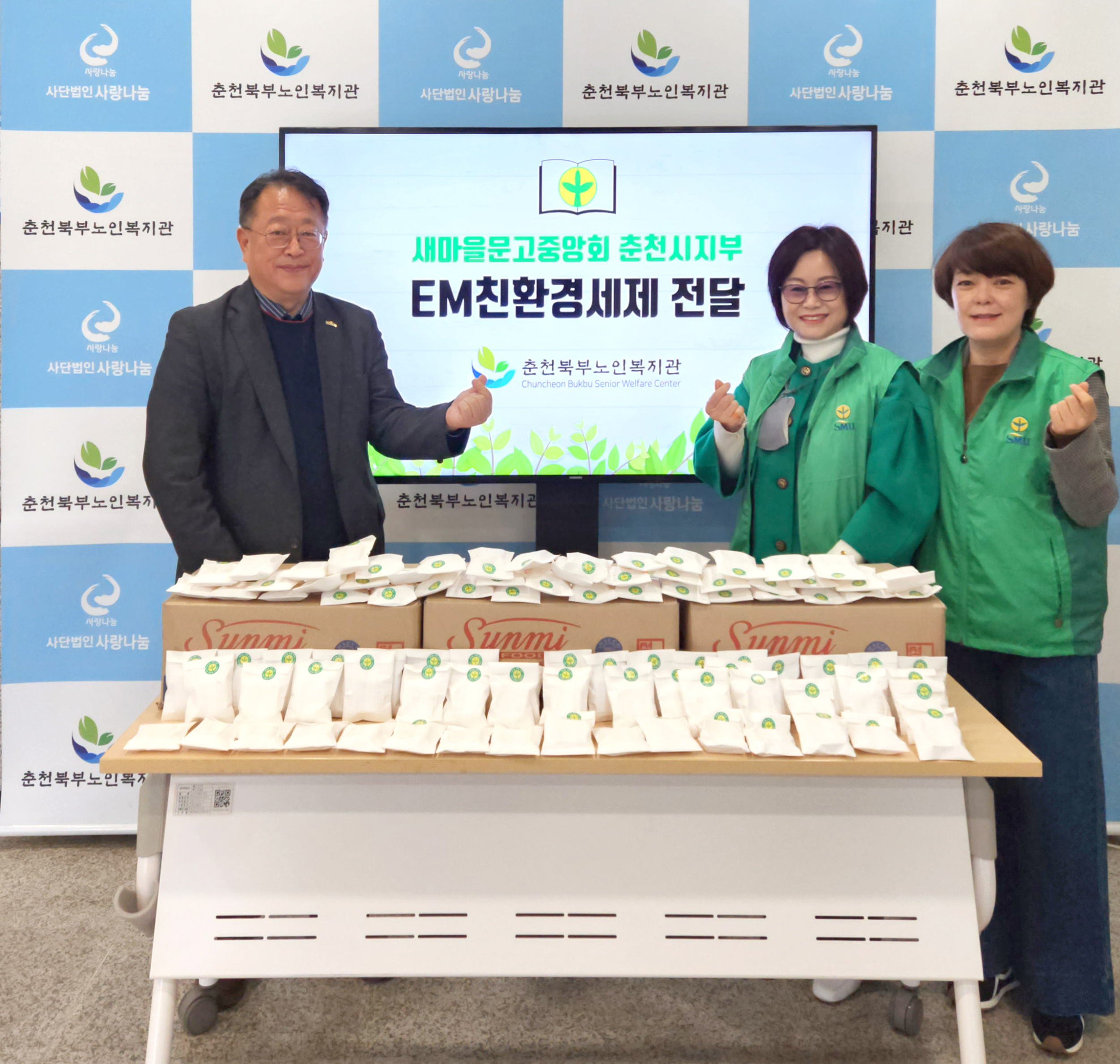 [강원사회복지신문 김도연 기자]=새마을문고중앙회 춘천시지부(회장 이희순)는 지난 3월 20일 기후위기 대응을 위한 친환경 EM주방비누를 지역사회 취약계층 지원을 위해 춘천북부노인복지관(관장 박재호) 측에 전달했다. 새마을문고중앙회 춘천시지부에서는 자연환경을 보호하고 실천할 수 있는 친환경 EM주방비누를 직접 만...