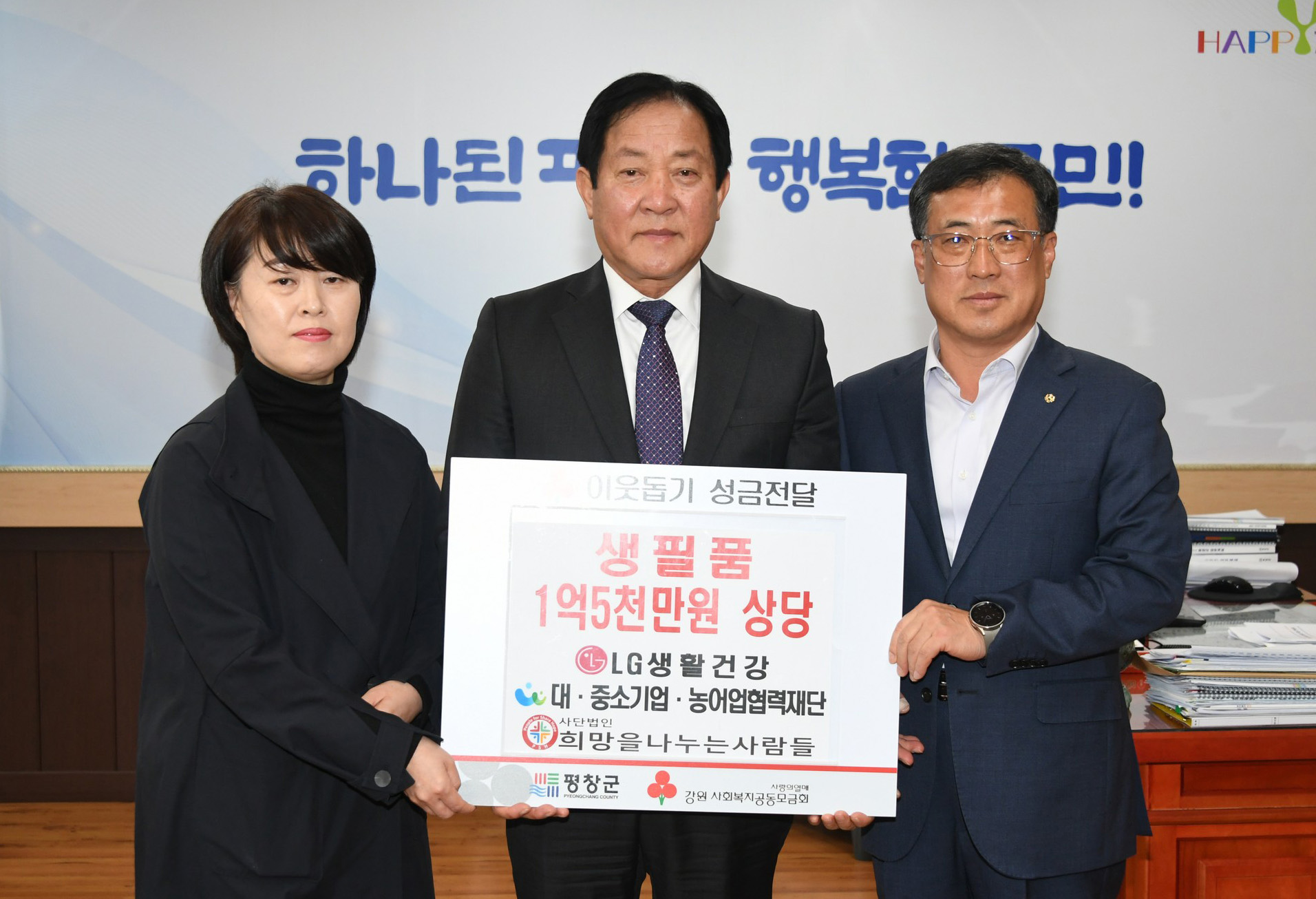 [강원사회복지신문 김도연 기자]='사단법인 희망을 나누는 사람들'(회장 김정안)이 지난 3월 20일 취약계층 지원을 위해 1억 5천만원 상당의 생필품 1,500박스와 마스크 8만장을 평창군에 기탁하였다. 사단법인 희망을 나누는 사람들은 국내 기업들로부터 다양한 후원을 받아 소외이웃을 후원하는 사회공익법인으로 우리나라...