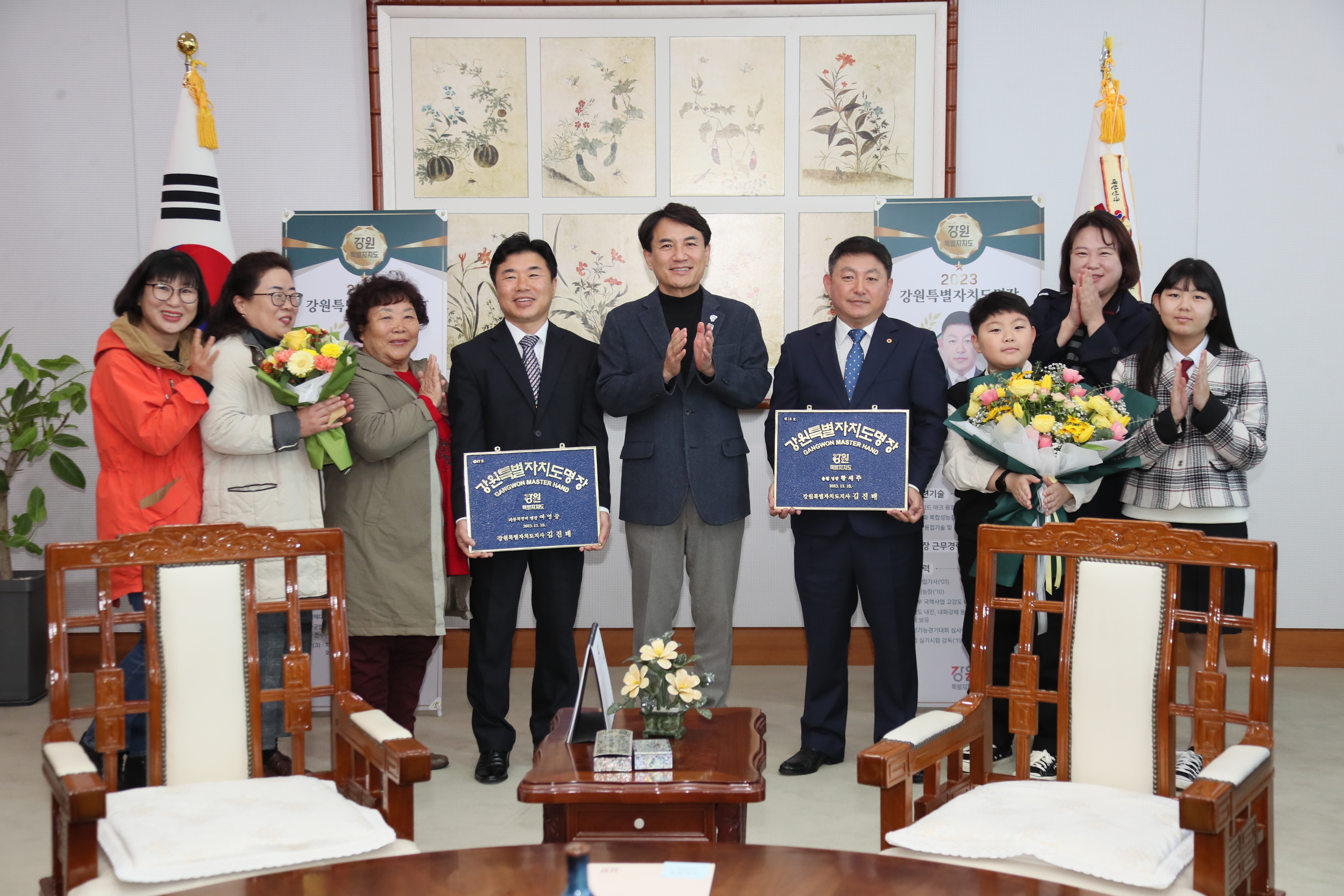 강원특별자치도(도지사 김진태)는 지난 11월 10일(금) 10:00에 도청 통상상담실에서 '2023년 강원특별자치도 명장수여식'을 개최, 올해 명장으로 선정된 2명에게 인증서와 현판을 수여하고 축하하는 자리를 가졌다. 강원특별자치도명장에게는 명장 인증서와 현판을 수여하고 도내 산업발전·후진양성을 위한 기술장려금 총 4...