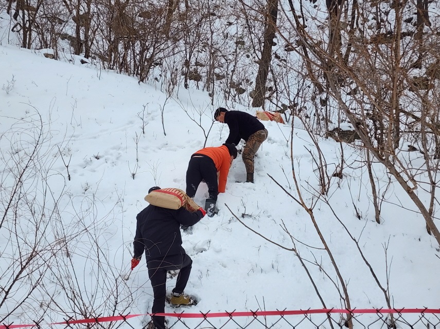 고성군(군수 함명준)은 지난 2월 3일(토), 미시령·진부령 일대에서 전국수렵인참여연대(고성지부)와 함께 산양(멸종위기 야생동물 I급 / 천연기념물 제217호)을 위해 산 '산양 먹이주기 활동'을 추진했다.
