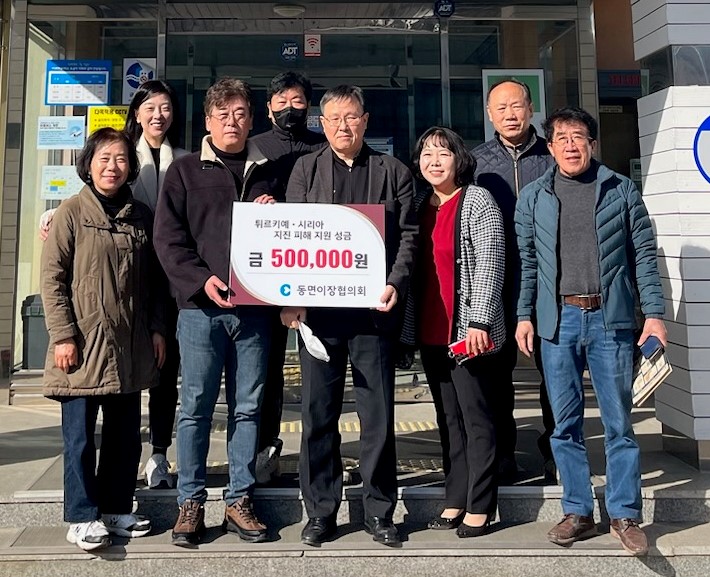 [강원사회복지신문 홍기한 기자]=춘천시 동면 이장단협의회(협의회장:신영묵)는 지난 3월 2일 튀르키예와 시리아 지진 피해 극복을 위한 성금 50만원을 동면행적복지센터에 전달했다.