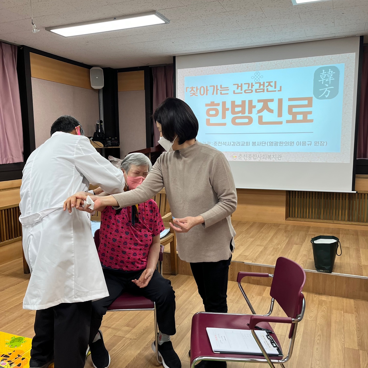 [강원사회복지신문 김도연 기자]=춘천종합사회복지관(관장 오미경)은 지난 2월 14일 춘천석사감리교회 의료봉사단(영광한의원 원장 이용규)함께 지역주민 대상으로 한방진료 봉사 활동을 진행했다. 이날 춘천석사감리교회 의료봉사단은 침술, 진맥 등 무료 진료를 실시하여 복지관 주변 지역주민들에게 호응을 얻었다.