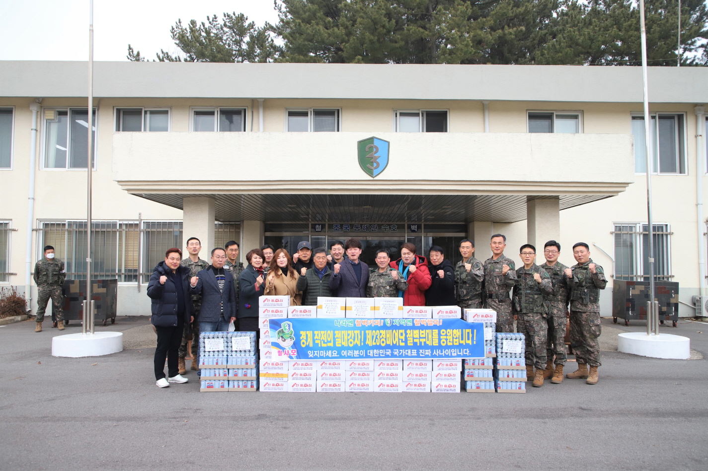 [강원사회복지신문 홍기한 기자]=삼척시자원봉사센터 철사모(철벽부대를 사랑하는 모임 / 회장 김성진) 봉사단은 지난 2월 7일 혹한기 훈련에 돌입하는 육군 제23경비여단을 방문해 위문품을 전달하고 즉석에서 인절미를 만들어 장병들에게 따뜻한 응원의 마음을 전했다. 철사모는 지역에 주둔한 군 장병을 응원하기 위해 지...