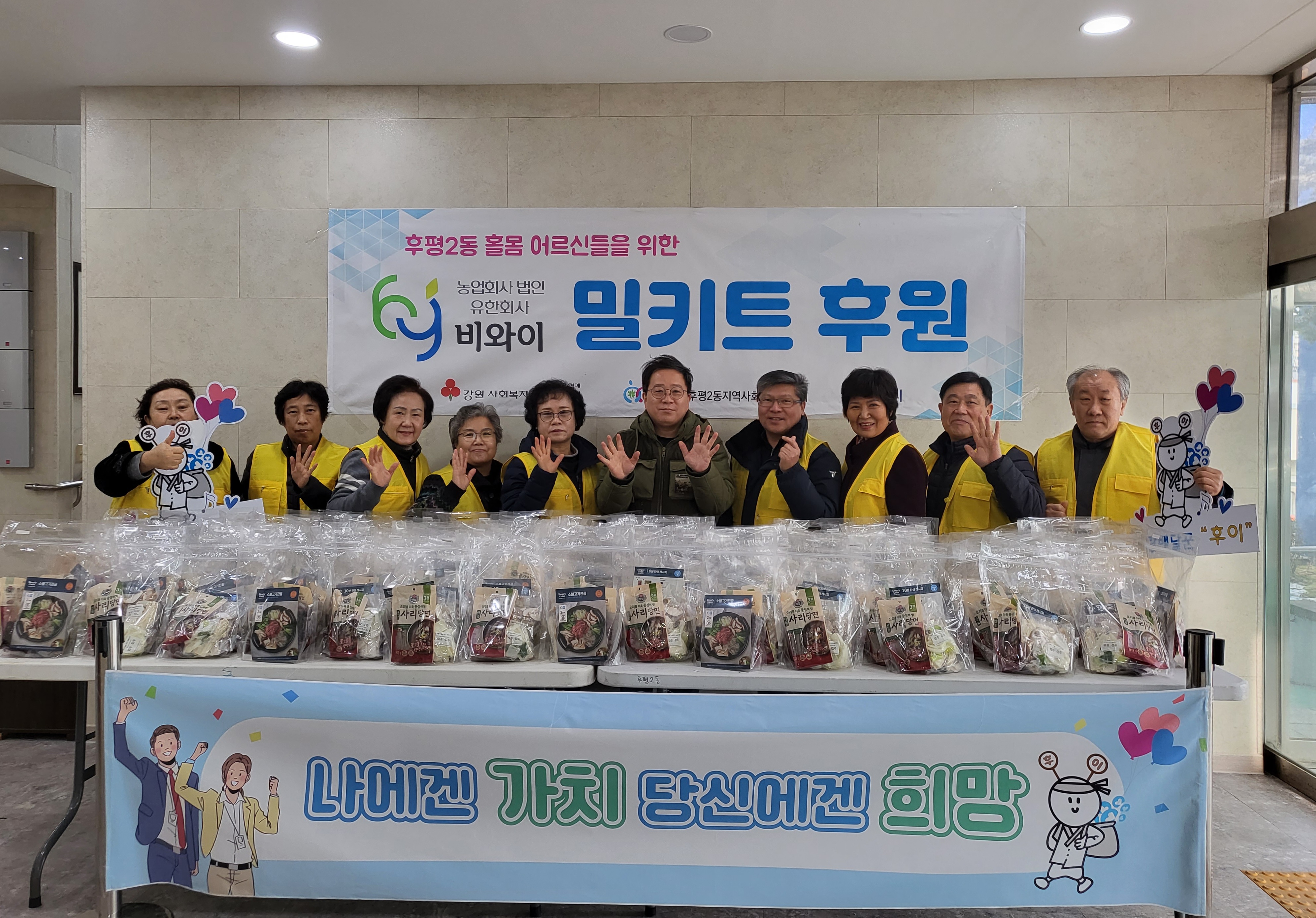 [강원사회복지신문 김도연 기자]=농업회사법인 유한회사 비와이(대표 대표 추풍년·사장 임현태)는 지난 2월 9일 선한이웃 마을돌봄 프로젝트의 일환으로 춘천시 후평2동 관내 취약계층 80명과 지역아동센터 2개소에 밀키트 100개를 후원했다.
