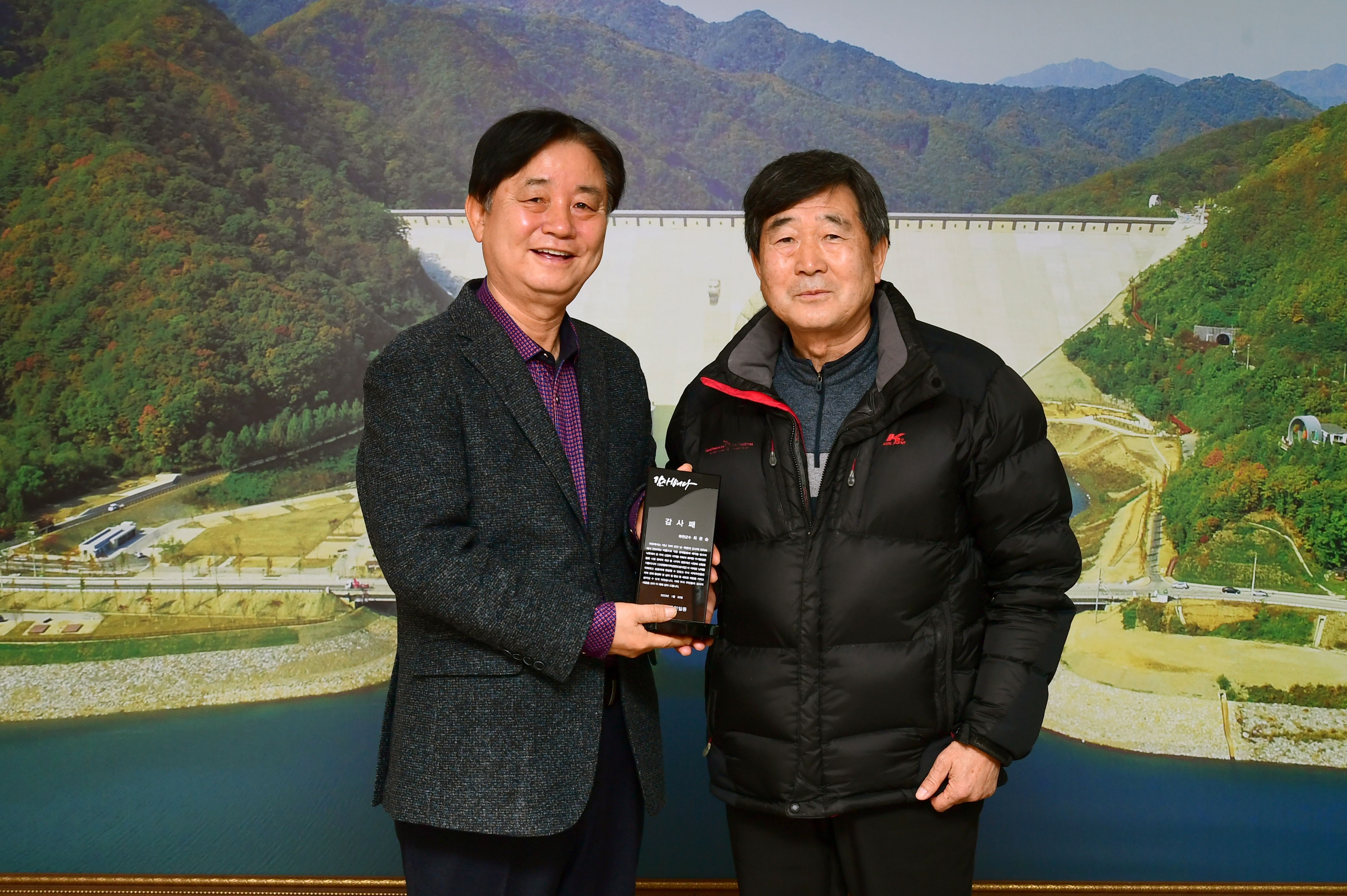 [강원사회복지신문 이정환 기자]=산양평화지역 발전추진위원회(위원장:박선길)는 지난 2월 8일 최문순 화천군수를 방문해 산양평화지역 경관개선사업의 성공적 추진에 대한 주민들의 마음을 담아 감사패를 전달했다.