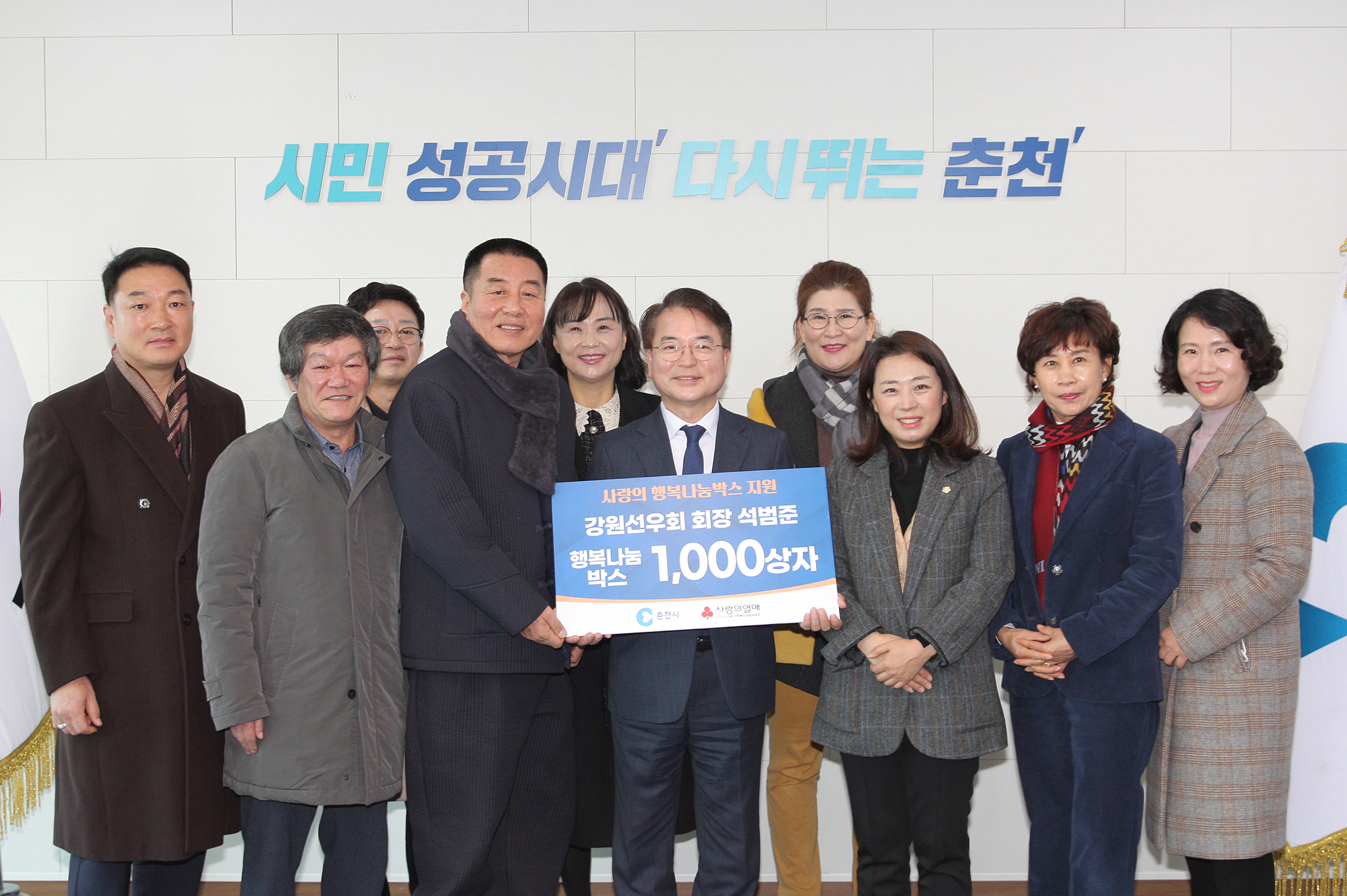 [강원사회복지신문 서은진 기자]=강원선우회(회장:석범준)는 지난 2월 1일 춘천시청 접견실에서 행복나눔박스 1,000상자를 춘천시에 전달했다.