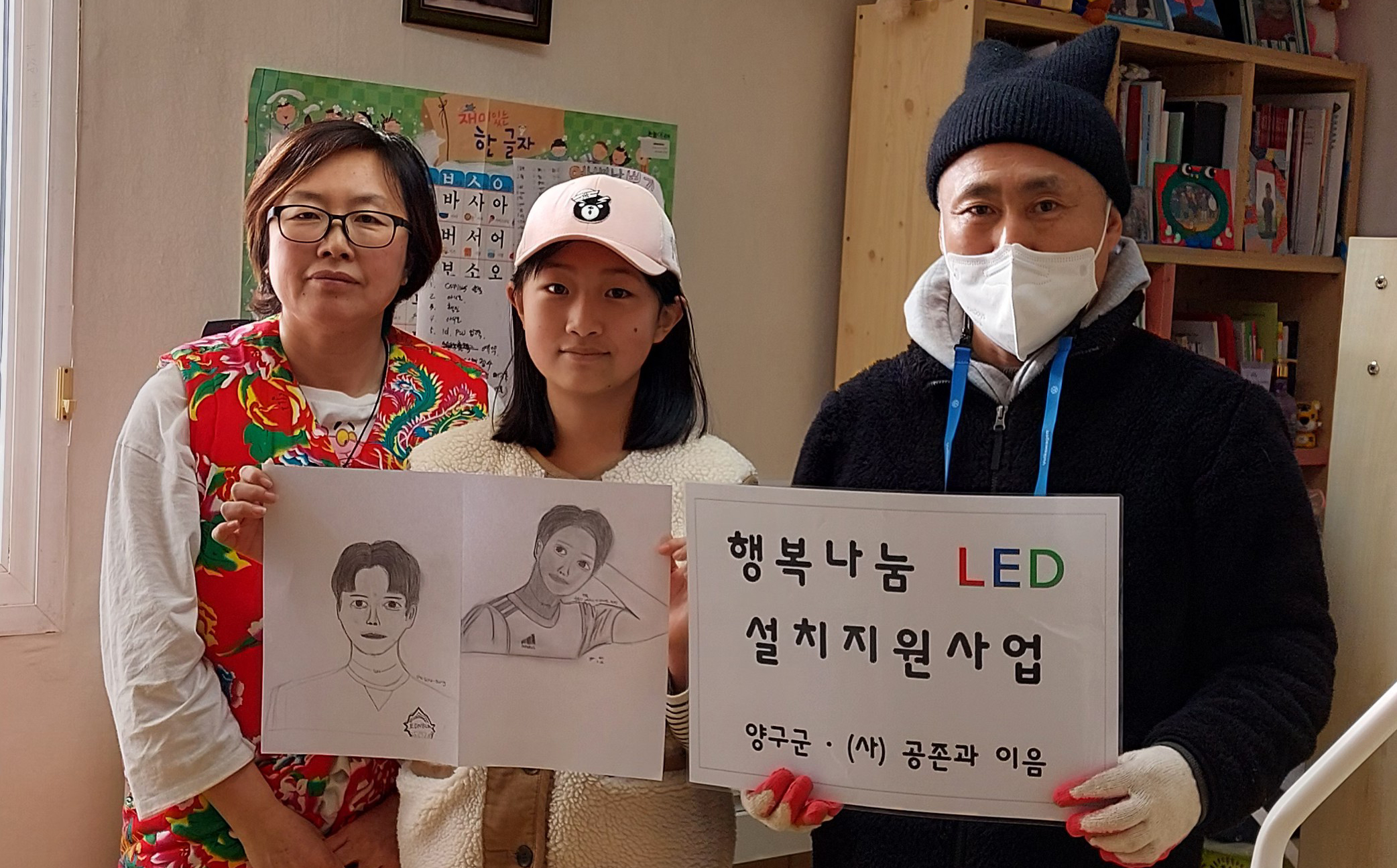 [강원사회복지신문 이정환 기자]=양구군은 지난 1월 28일 공익법인 공존과 이음(이사장 김영순)과 공동으로 양구군 가족센터에 등록된 드림 및 다문화 가정을 대상으로 LED 등 설치사업을 진행하였다. 이 사업은 노후된 가정의 조명을 밝은 LED 등으로 교체하여 가족 구성원들이 밝은 빛을 함께 나누자는 의미를 담고 있다. ...