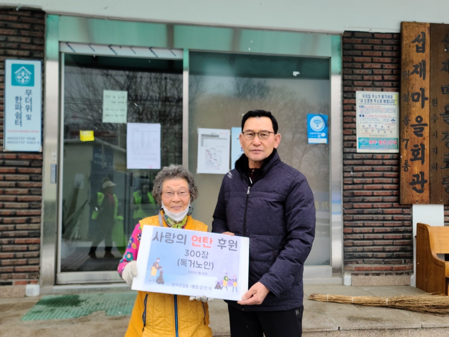 [강원사회복지신문 서은진 기자]=강인식 반곡관설동 7통장(섭재마을)은 지난 1월 26일 원주시 반곡관설동 관내 독거노인을 위해 '사랑의 연탄' 300장을 전달했다. 강인식 통장은 "2023년 새해를 맞아 온기가 필요한 이웃과 함께 따뜻한 정을 나누고 싶은 마음으로 연탄을 준비하게 됐다."라며, "앞으로도 주변 이웃들을 위한...