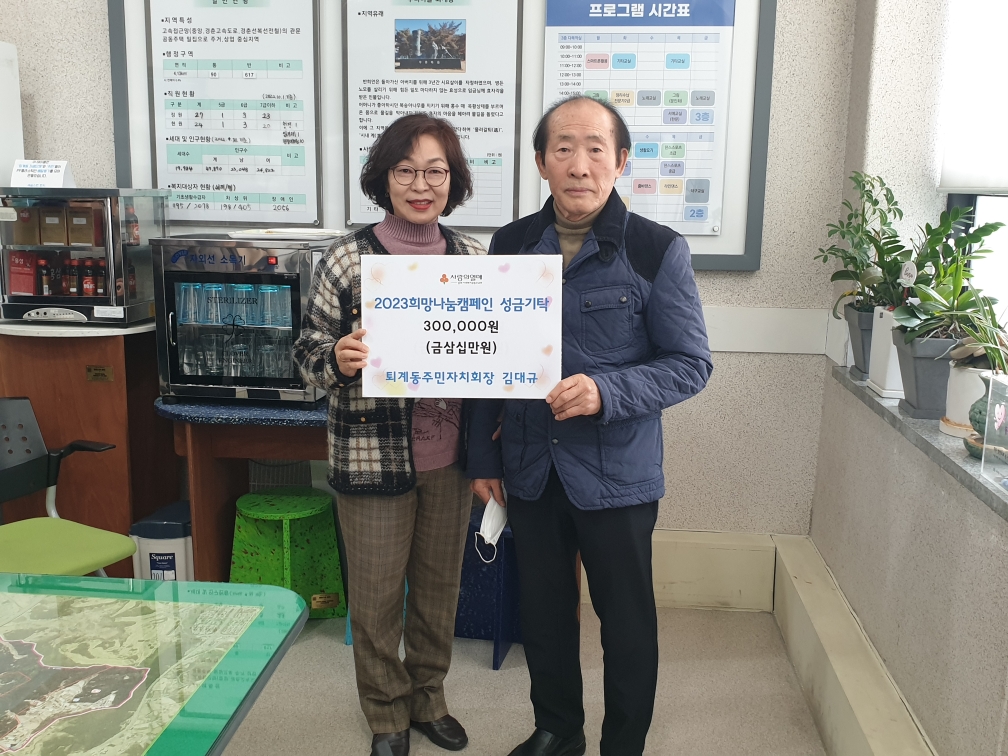 [강원사회복지신문 서은진 기자]=김대규 퇴계동 주민자치회장은 지난 1월 27일 지역 내 거주 어려운 이웃을 위한 성금 30만원을 춘천시 퇴계동행정복지센터(동장 윤행자)에 기탁했다.