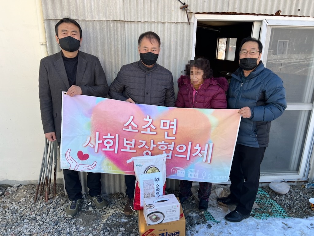 [강원사회복지신문 서은진 기자]=원주시 소초면 지역사회보장협의체(공동위원장 김용환, 홍동호)는 지난 1월 20일 설 명절맞이 위문 행사를 실시했다. 이날 위원들은 관내 저소득가구를 방문해 안부를 확인하고 쌀, 라면 등 설 명절 위문품을 전달했다.