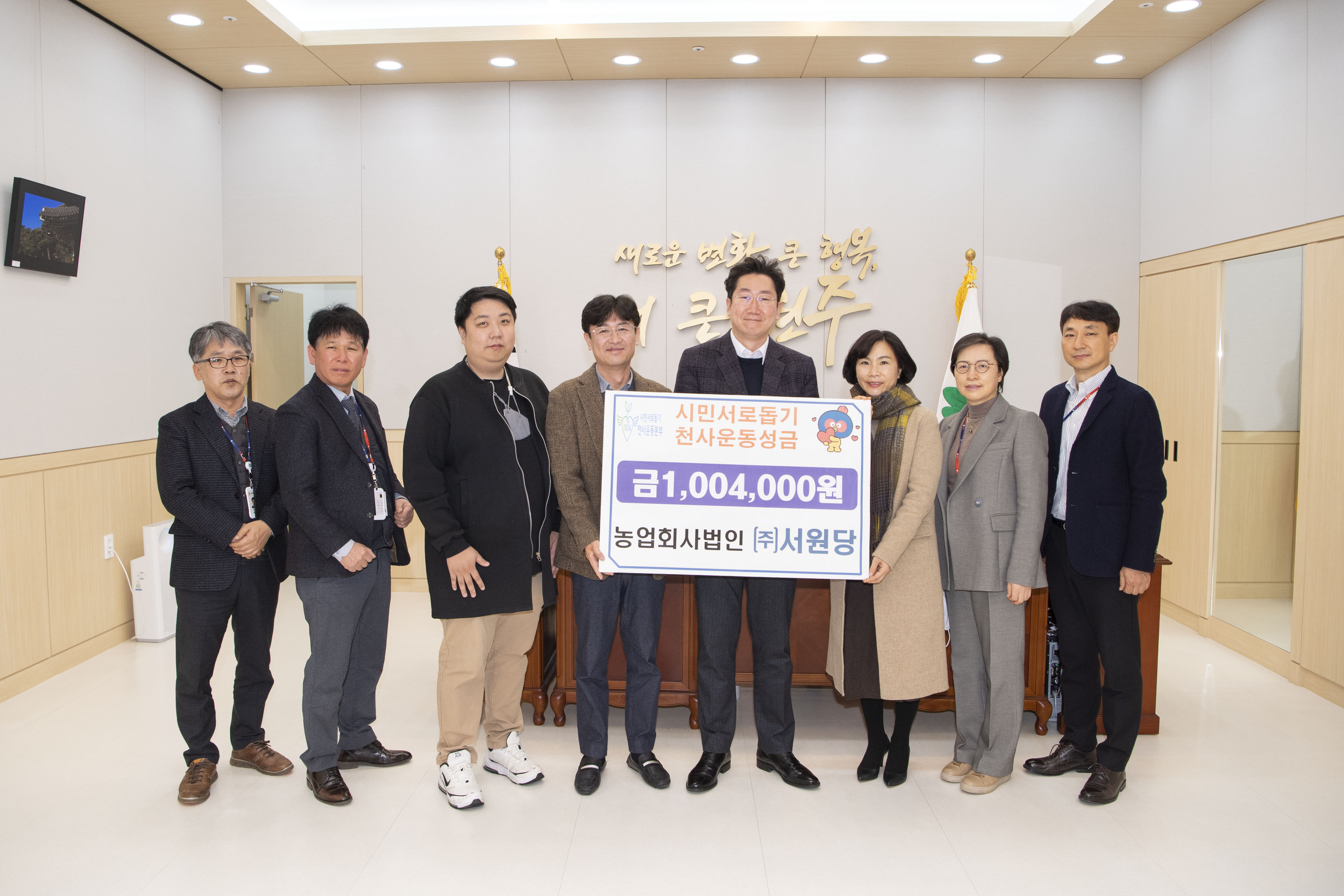 [강원사회복지신문 김도연 기자]=원주시 신림면 소재 농업회사법인 (주)서원당(대표이사 김봉현)은 지난 1월 20일 시장 집무실에서 시민서로돕기 천사운동 후원금 100만 4천 원(1,000계좌)을 기탁했다. 이날 전달식에는 김봉현 대표이사, 김영원 과장 등이 참석했다. 김봉현 대표이사는 "지역과 상생하는 기업으로 어려운 이...