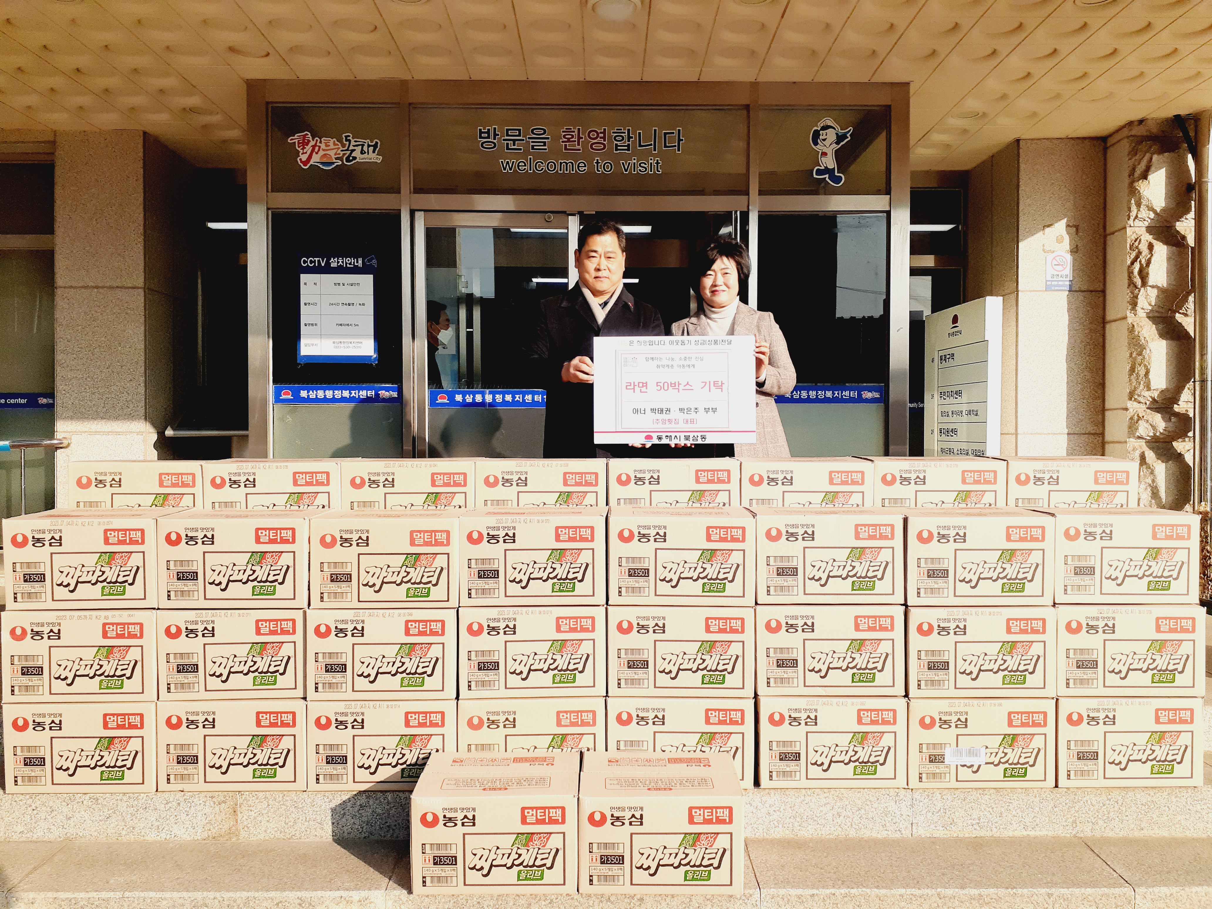 [강원사회복지신문 김종한 기자]=동해시 최초 부부 아너 소사이어티 박태권·박은주 부부(추암횟집 운영)가 지난 1월 12일 북삼동 관내 저소득 아동을 위해 라면 50박스(금216만원 상당)를 기탁했다. 지난 2019년에 박태권 대표의 아너 소사이어티 가입 이후 지난해는배우자 박은주 대표도 가입해 동해시 최초 부부 아너 소사...