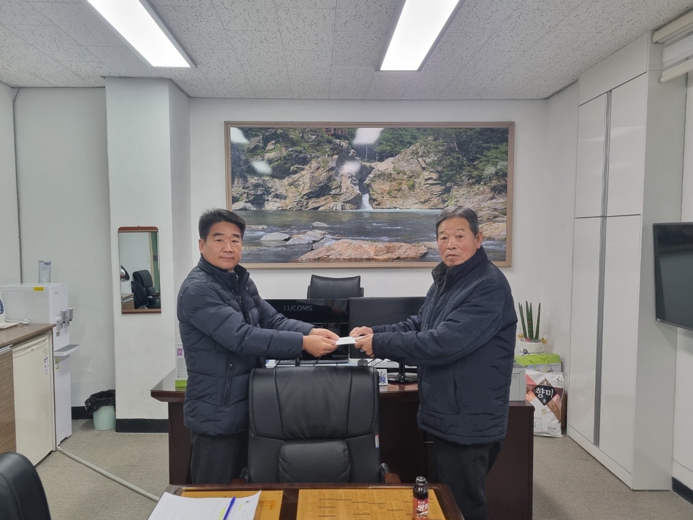 [강원사회복지신문 이정환 기자]=김상태 전 양구군 농업기술자협의회 양구군지회장(방산면 장평리, 78세, 사진 오른쪽)은 최근 불우이웃돕기 성금 300,000원을 방산면에 기탁했다. 김 전회장은 불우이웃돕기 성금과 양록장학금을 매년 기부해 왔으며, 앞으로도 지속적인 기부의 뜻을 전했다.