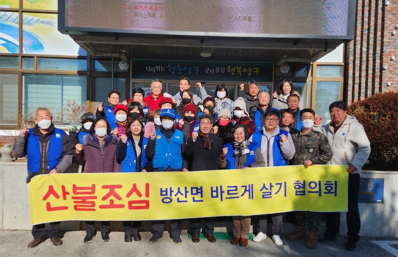[강원사회복지신문 김도연 기자]=양구군 방산면 바르게살기협의회(회장 윤진모)회원 30여 명은 지난 1월 5일 방산면사무소와 시가지 일원에서 봄철 산불조심 캠페인을 실시하며 산불 조심 홍보물을 배부했다. 이날 캠페인에는 서흥원 양구군수, 이기찬 강원도의회 부의장, 방산면 기관·단체장 등이 함께했다.