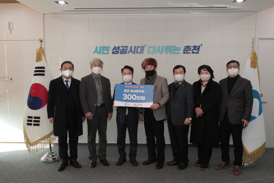 [강원사회복지신문 김도연 기자]=춘천 호남향우회는 지난 1월 3일 접견실에서 성금 300만원을 춘천시에 기탁했다.