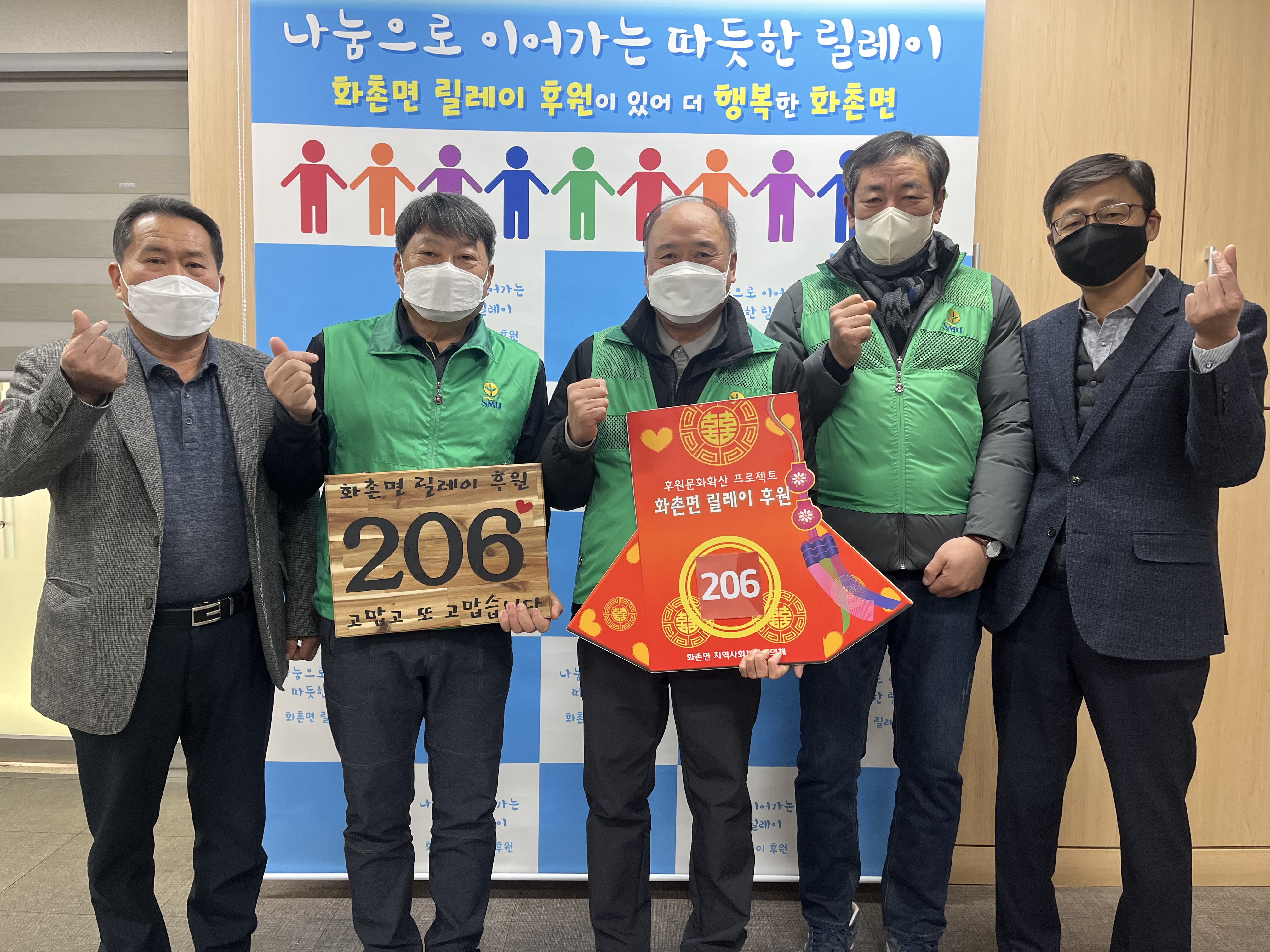 [강원사회복지신문 서은진 기자]=홍천군 화촌면 지역사회보장협의체에서 후원문화 확산을 위해 진행 중인 '화촌면 릴레이 후원'이 계묘년 새해를 맞아 힘차게 시작됐다. 화촌면 새마을회(새마을지도자협의회장 김려수, 새마을부녀회장 최은순)는 지난 1월 3일 화촌면행정복지센터를 방문해 '화촌면 릴레이 후원' 206번째 주자...