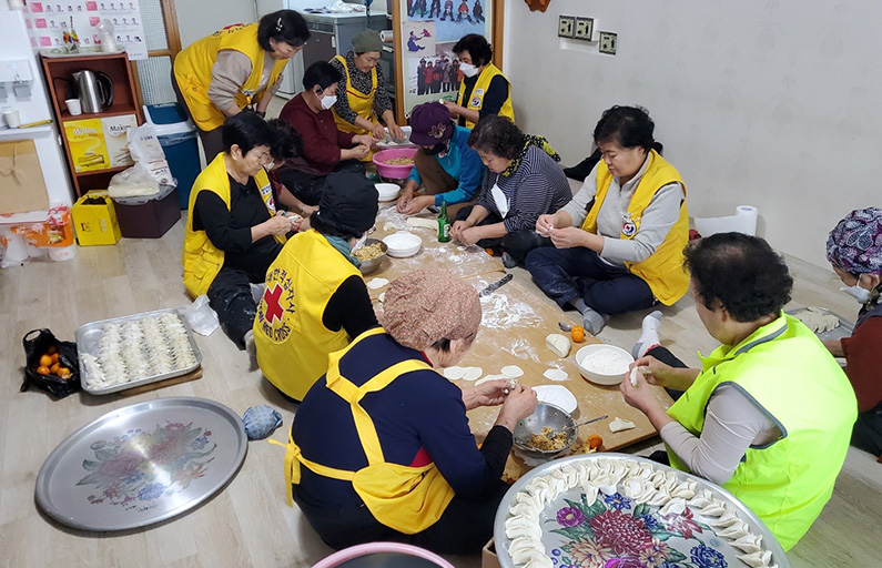 [강원사회복지신문 이정환 기자]=대한적십자 평창지구 대화봉사회(회장 이은경)일동 10여 명은 연말연시 관내 소외된 이웃 100가구에 이웃사랑 만두, 떡국떡을 내년 초까지 계속해서 나눌 예정이다. 대화적십자회는 최근 혹한기 난방 취약계층에 난방텐트, 연탄지원 등 봉사활동을 한데 이어, '혹한기 따듯한 함박 눈웃음 나...