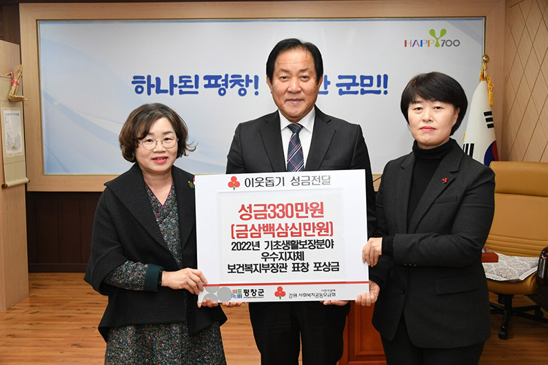 [강원사회복지신문 서은진 기자]=평창군은 보건복지부가 기초생활보장·긴급지원 사업 실적 우수 지자체 26개소를 대상으로 실시한 '2022년 기초생활보장분야 우수 지자체 평가'에서 보건복지부장관 표창을 수상하게 되었다. 보건복지부장관 표창 수상 포상금 일부(330만원)는 연말연시 나눔 실천을 위한 불우이웃돕기 성금으...