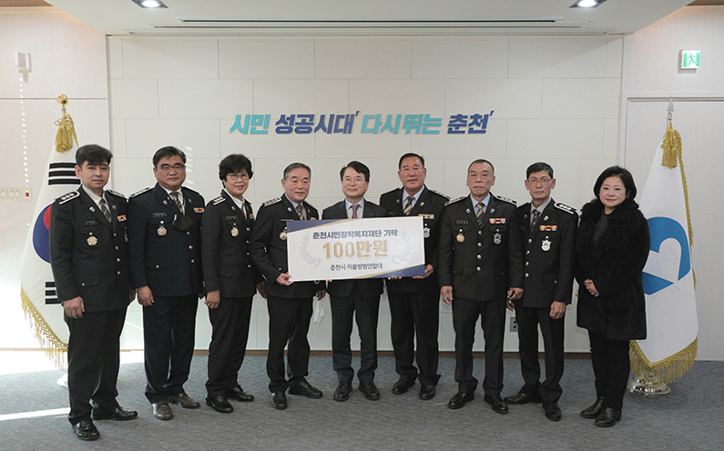 [강원사회복지신문 이정환 기자]=춘천시자율방범연합대(대장 김영주)는 지난 12월 19일 춘천시민장학복지재단에 장학금 100만원을 기탁하였다.