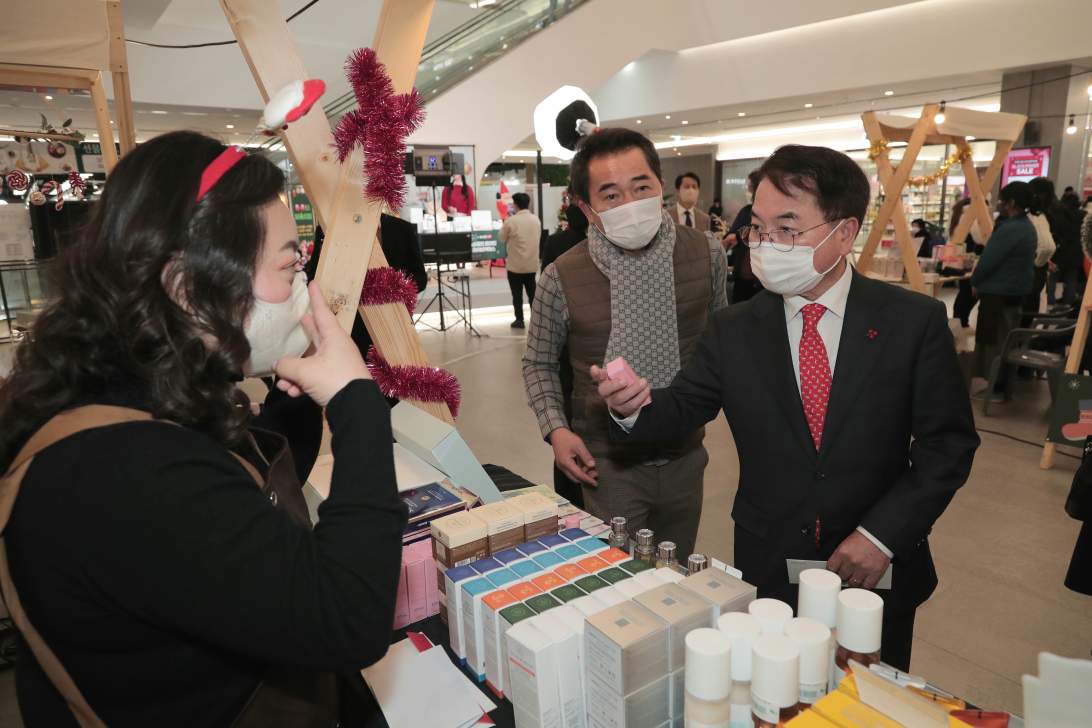 [강원사회복지신문 김도연 기자]=육동한 춘천시장은 지난 12월 16일 춘천농협 엔타에서 열린 중소기업제품 크리스마스마켓 '윈-윈터 페스티벌'을 방문했다.