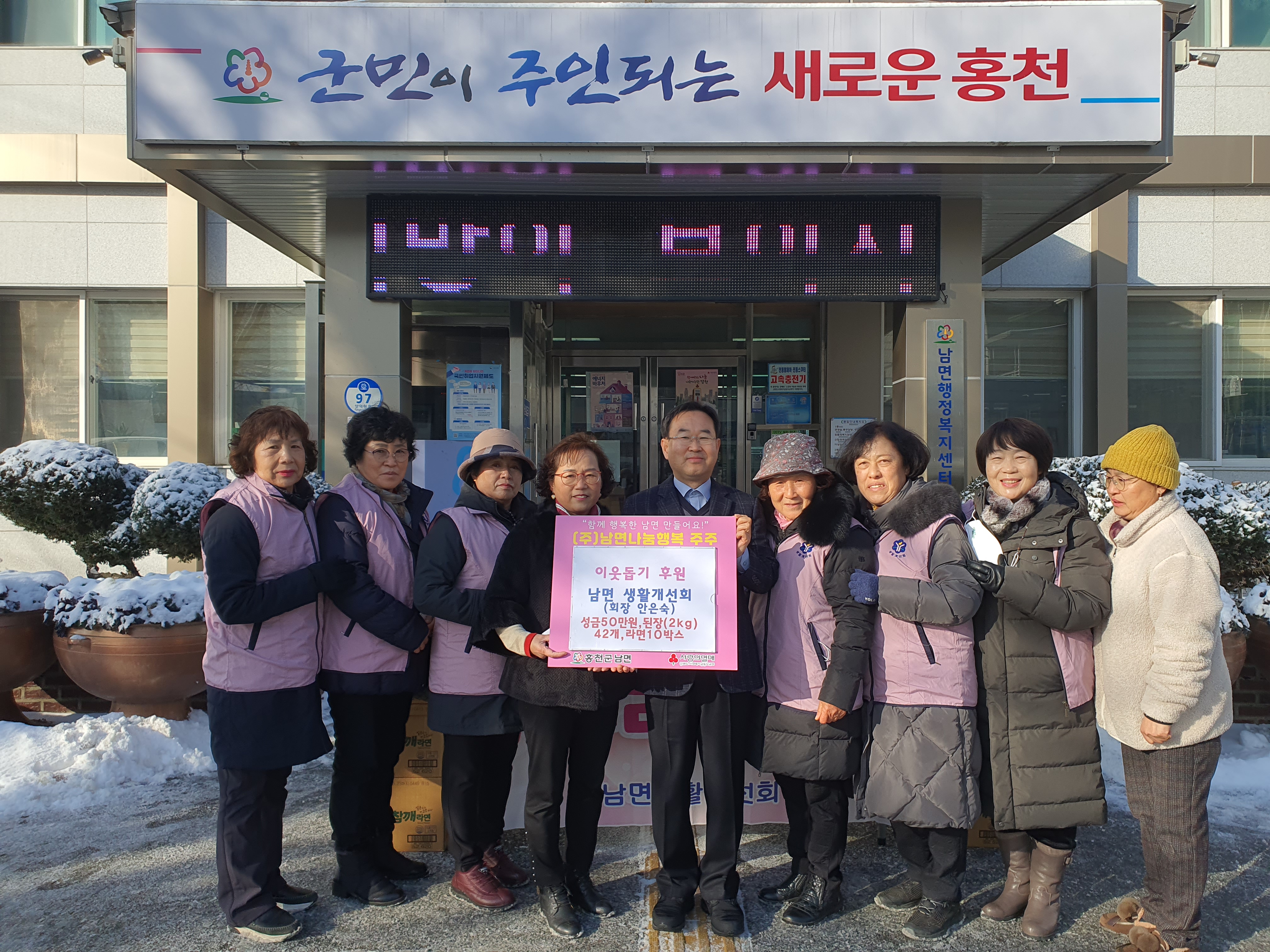 [강원사회복지신문 홍기한 기자]=홍천군 남면 생활개선회(회장 안은숙)는 지난 12월 16일 남면행정복지센터를 방문해 어려운 이웃돕기 성금 50만원과 된장(2kg) 42통, 라면 10박스를 기탁했다. 안은숙 회장은 "코로나19 장기화로 모두가 힘든 시기에 회원들이 정성스럽게 담근 된장을 이웃들에게 나눌 수 있어 너무 행복하다...