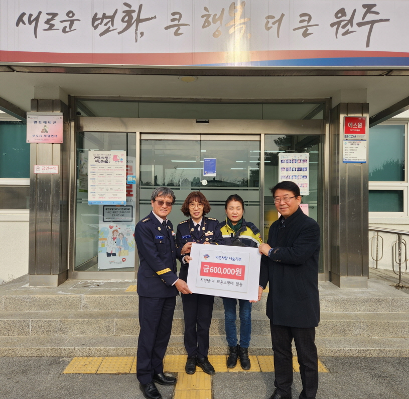 [강원사회복지신문 김도연 기자]=원주 지정 남·여 의용소방대(대장 박전하, 박영미)는 지난 12월 12일 어려운 이웃을 위해 써달라며 성금 60만 원을 지정면 행정복지센터에 전달했다. 후원금은 저소득층, 복지시설 등 지역사회에 도움이 필요한 곳에 전달될 예정이다. 지정 남·여 의용소방대는 평소 지역주민의 안전을 위해...