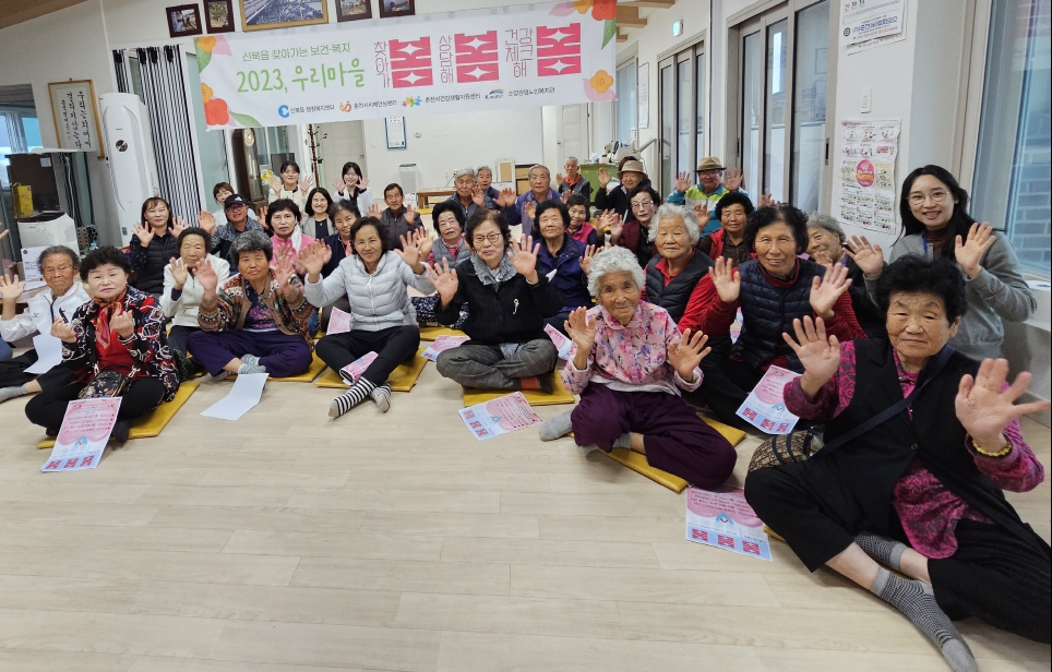 춘천시 신북읍행정복지센터(읍장 홍미순)는 지난 10월 19일 발산1리경로당(노인회장 정영화)에서 건강생활지원센터 등 보건복지 유관기관과 함께 '우리마을 봄봄봄'을 진행했다.