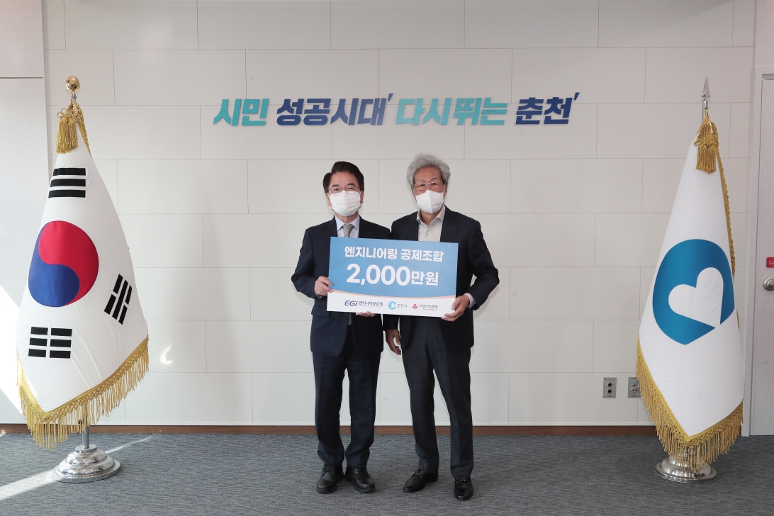 [강원사회복지신문 서은진 기자]=산업통상자원부 산하 특수법인 엔지니어링 공제조합(이사장:김수보)은 지난 11월 16일 춘천시청 시장 접견실에서 후원금 2,000만원을 춘천시에 전달했다.