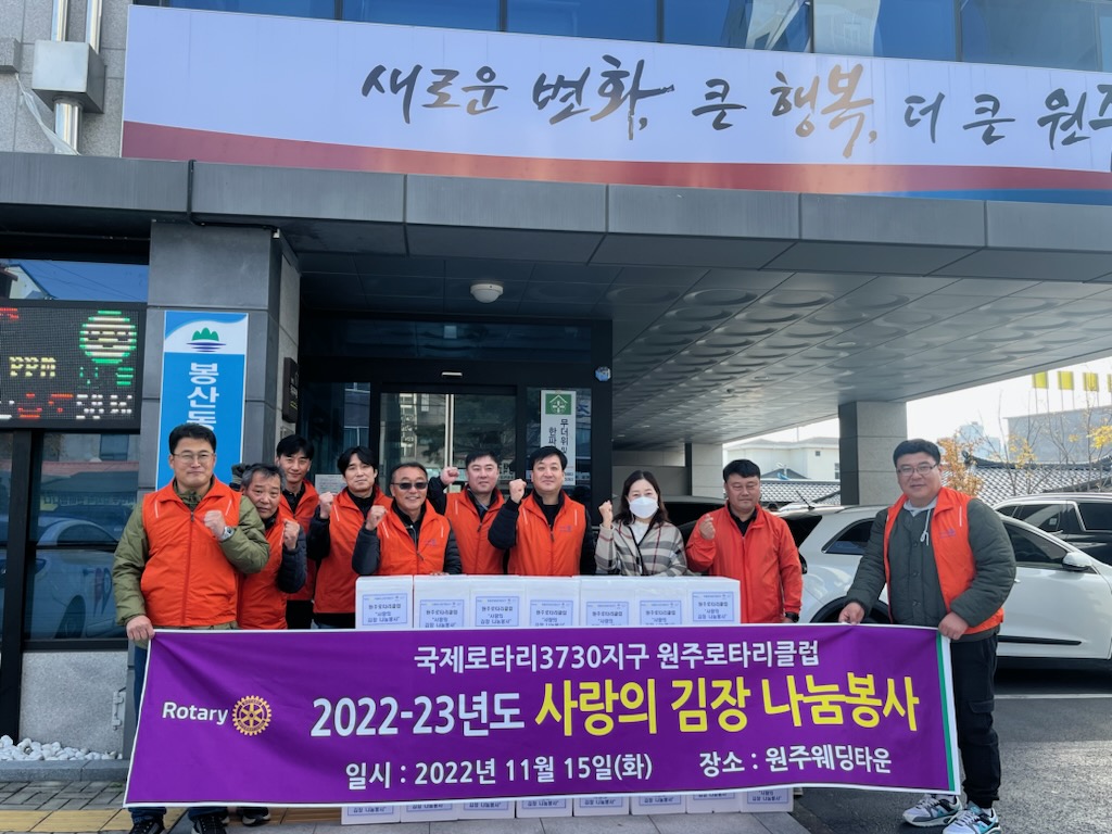 [강원사회복지신문 서은진 기자]=원주로타리클럽(회장 정요한)은 지난 11월 15일 원주시 봉산동 행정복지센터(동장 엄미남)에 관내 취약계층을 위해 써달라며 김장김치 31박스를 전달했다. 정요한 회장은 "회원들이 직접 준비한 김장김치를 맛있게 드셨으면 좋겠다."라며, "앞으로도 어려운 분들을 위해 봉사활동을 꾸준히 이...