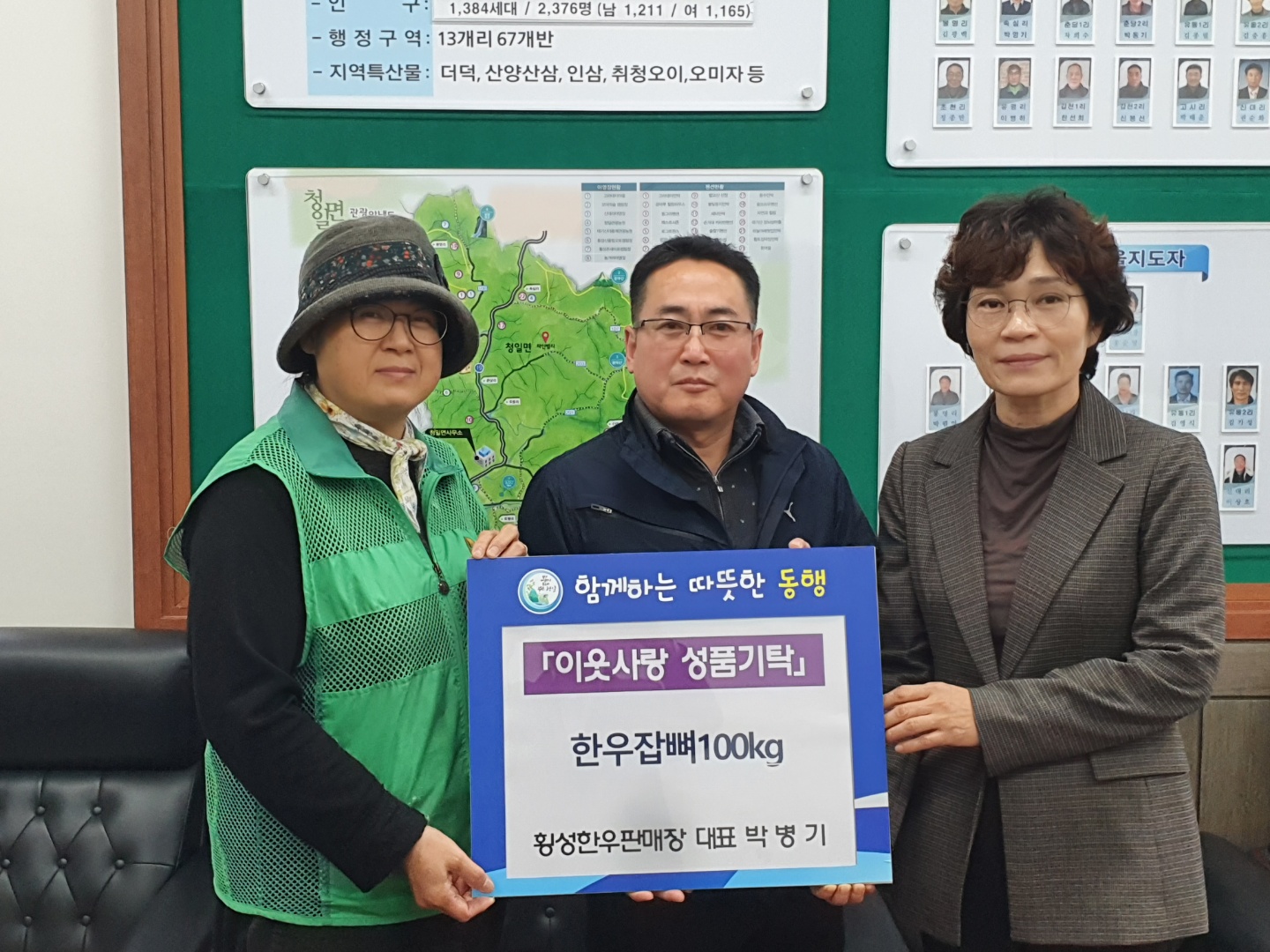 [강원사회복지신문 홍기한 기자]=횡성한우판매장 박병기 대표는 지난 11월 10일, 횡성군 청일면행정복지센터를 방문하여 어려운 이웃들에게 조금이나마 힘을 드리고 싶다며 한우잡뼈 100kg를 기탁하였다. 기탁된 한우잡뼈는 청일면새마을부녀회(회장 박희순)에서 사골국물로 우려 관내 홀로 계시는 어르신 및 중장년층 등 10...
