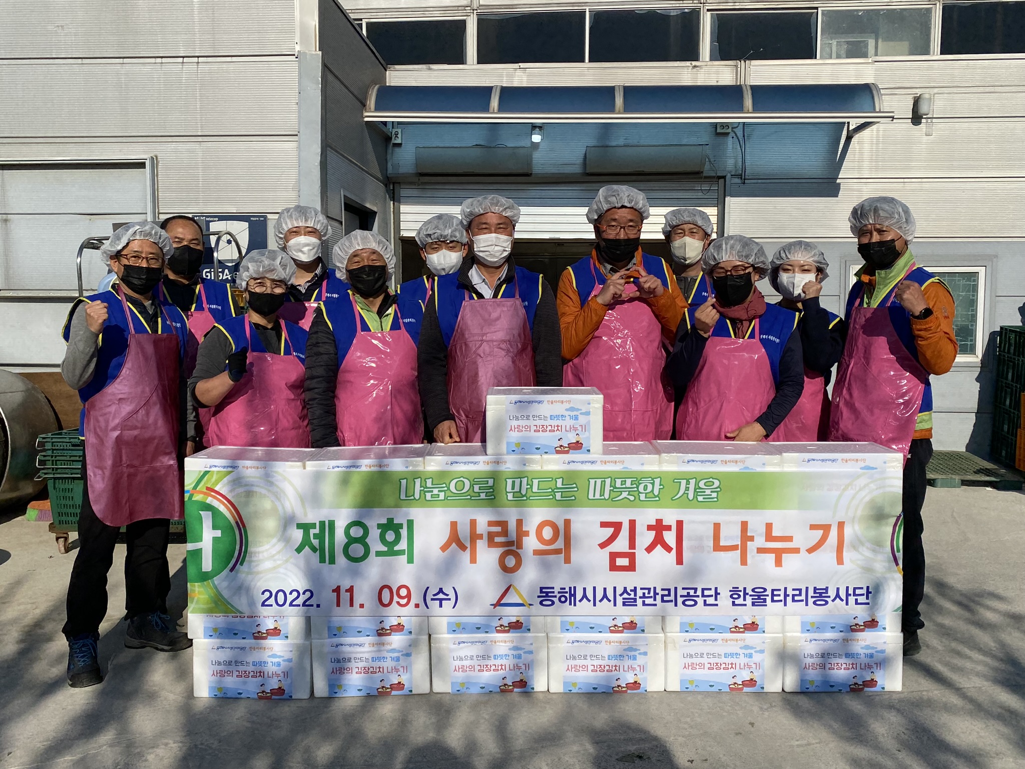 [강원사회복지신문 김종한 기자]=동해시시시설관리공단 한울타리봉사단에서는 지난 11월 9일 '사랑의 김장 김치 나눔' 행사를 실시했다. 금년 8회째를 맞는 김치 나눔 행사에서는 지역 농가에서 재배한 배추와 재료로 봉사단원들이 손수 담근 김장김치 200kg을 취약계층 25세대를 가정마다 방문하여 격려와 함께 지역사회의 ...