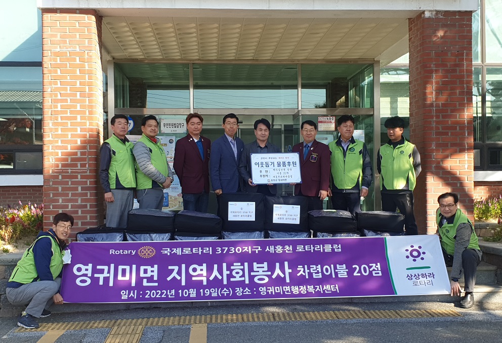 [강원사회복지신문 홍기한 기자]=국제로타리 3730지구 새홍천로타리클럽(회장 박원근)은 지난 10월 19일 영귀미면행정복지센터를 방문해 저소득층과 소외계층을 위한 겨울이불 20채(140만원 상당)를 전달했다. 새홍천로타리클럽은 창립 초기부터 물품후원, 복지시설 방문, 주거환경개선, 장학금 전달 등 지역봉사에 열정적 활...
