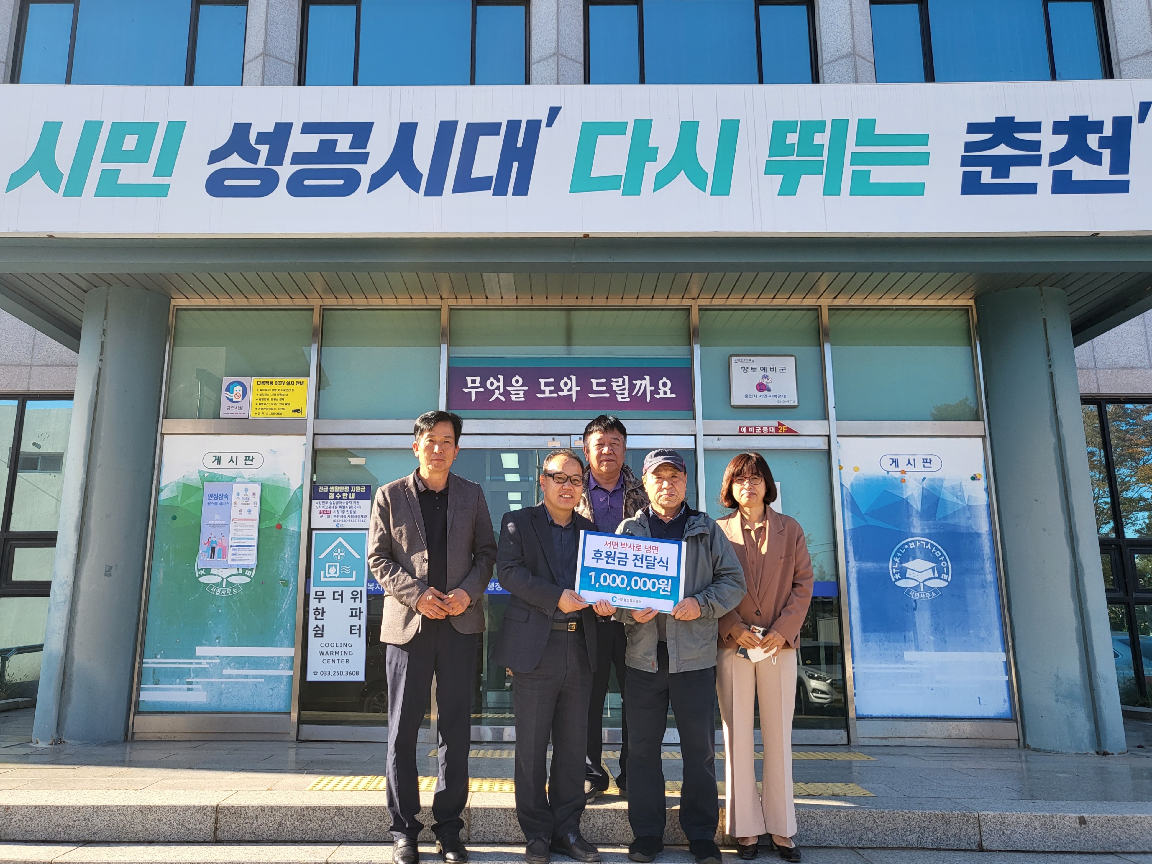 [강원사회복지신문 김도연 기자]=춘천시 서면 '박사로 냉면(대표:이재민)'은 지난 10월 13일 서면 지역 취약계층을 위해 후원금 100만원을 서면행정복지센터에 전달했다.