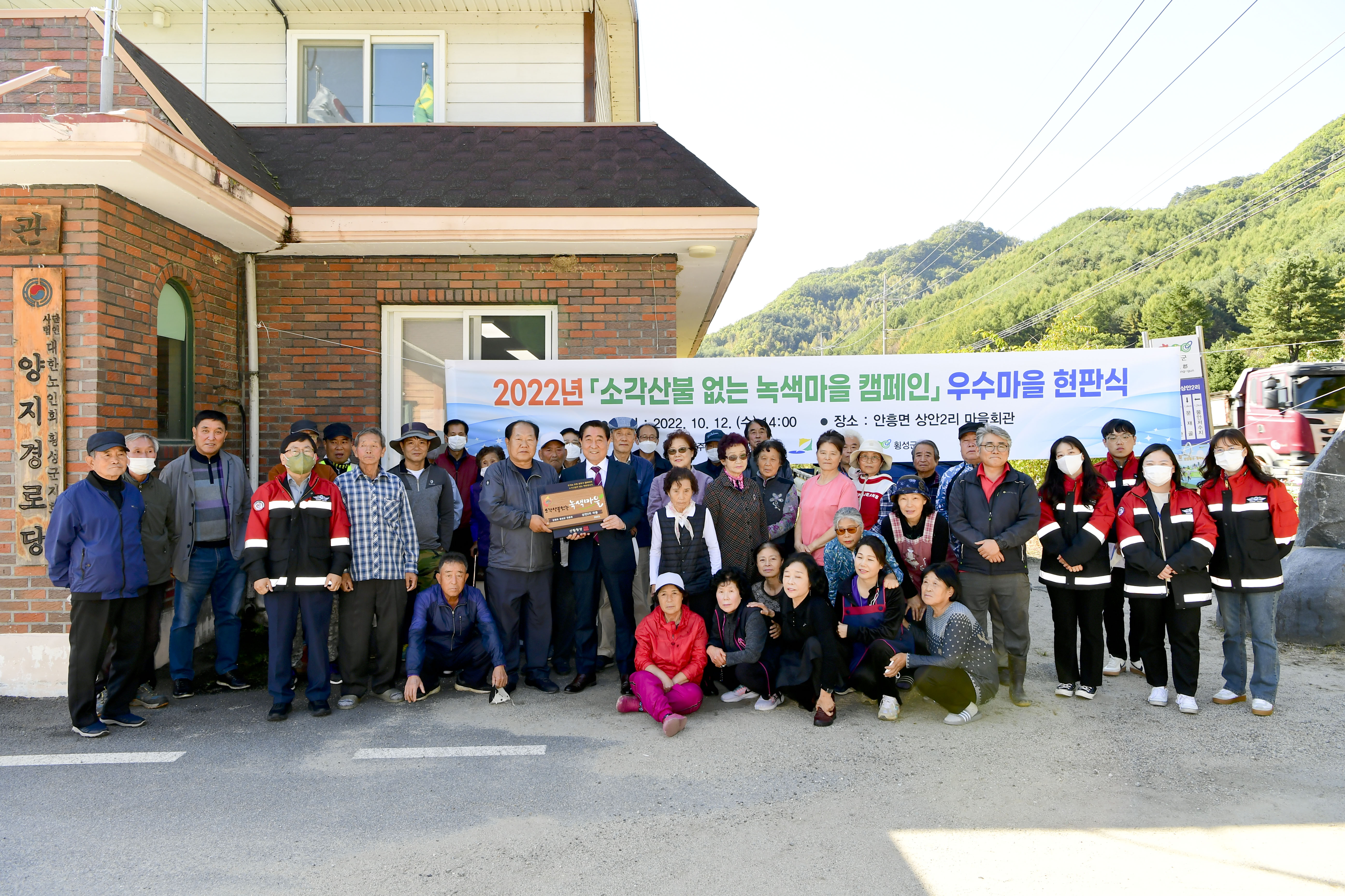 [강원사회복지신문 홍기한 기자]=지난 10월 12일, 각 마을회관에서 현판식 열려 횡성군 안흥면 상안2리와 갑천면 병지방2리가 2022년도 소각산불 없는 녹색마을 만들기 우수마을로 선정됐다. '소각산불 없는 녹색마을 만들기' 캠페인은 우리나라 산불 발생의 주원인인 논·밭두렁, 농업부산물 및 농산폐기물 등의 관행적 무단...