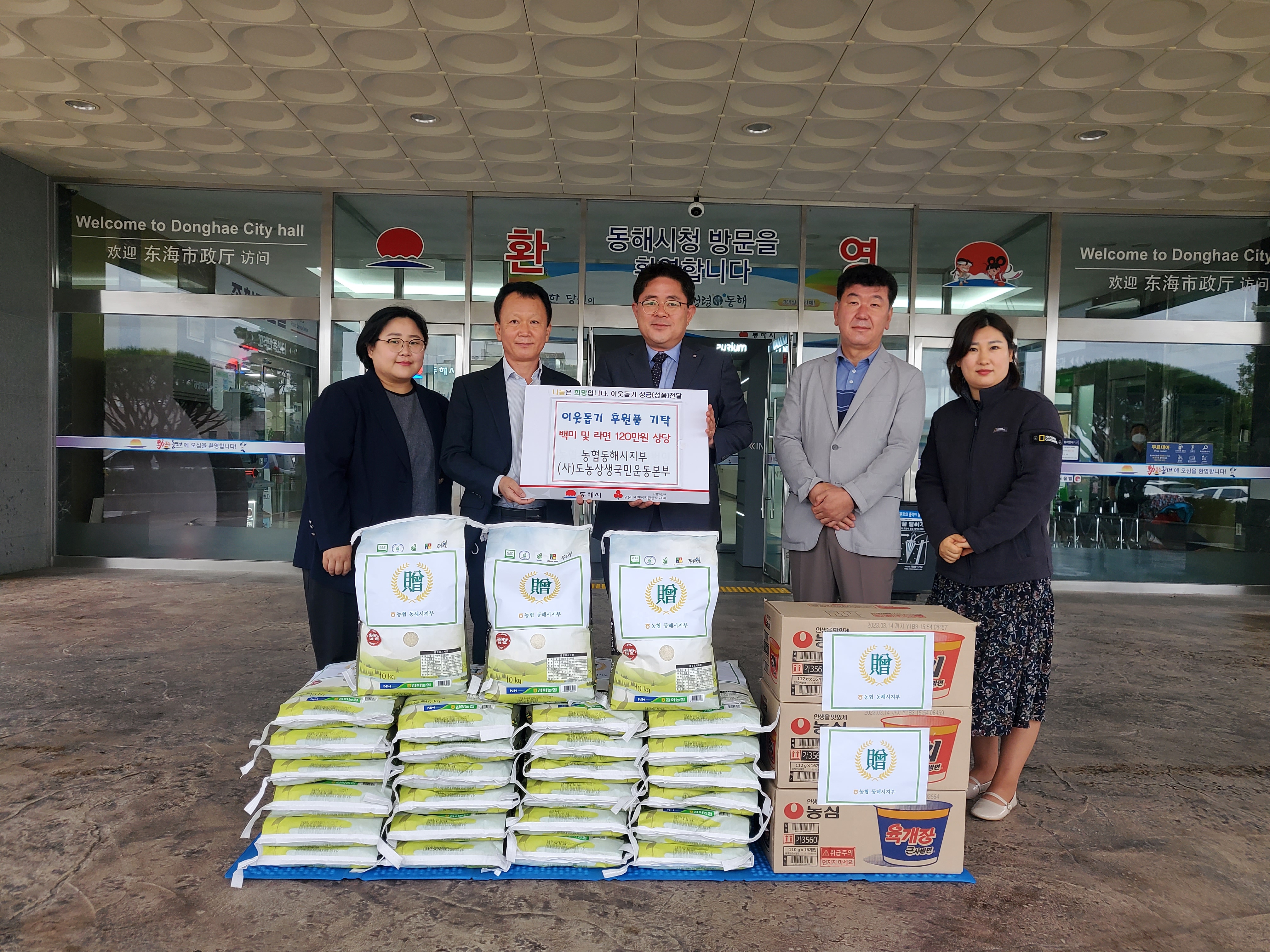 [강원사회복지신문 김종한 기자]=농협동해시지부(지부장 김일섭)와 사단법인 도농상생국민운동본부(본부장 정영일)는 무료급식소 등 4개소에 전달할 120만원 상당의 백미와 라면을 동해시에 기탁했다. 김일섭 지부장은 “작은 정성이지만 무료급식소에 잘 전달되어 어려운 이웃들이 급식을 해결하는 데 조금이나마 도움이 됐...