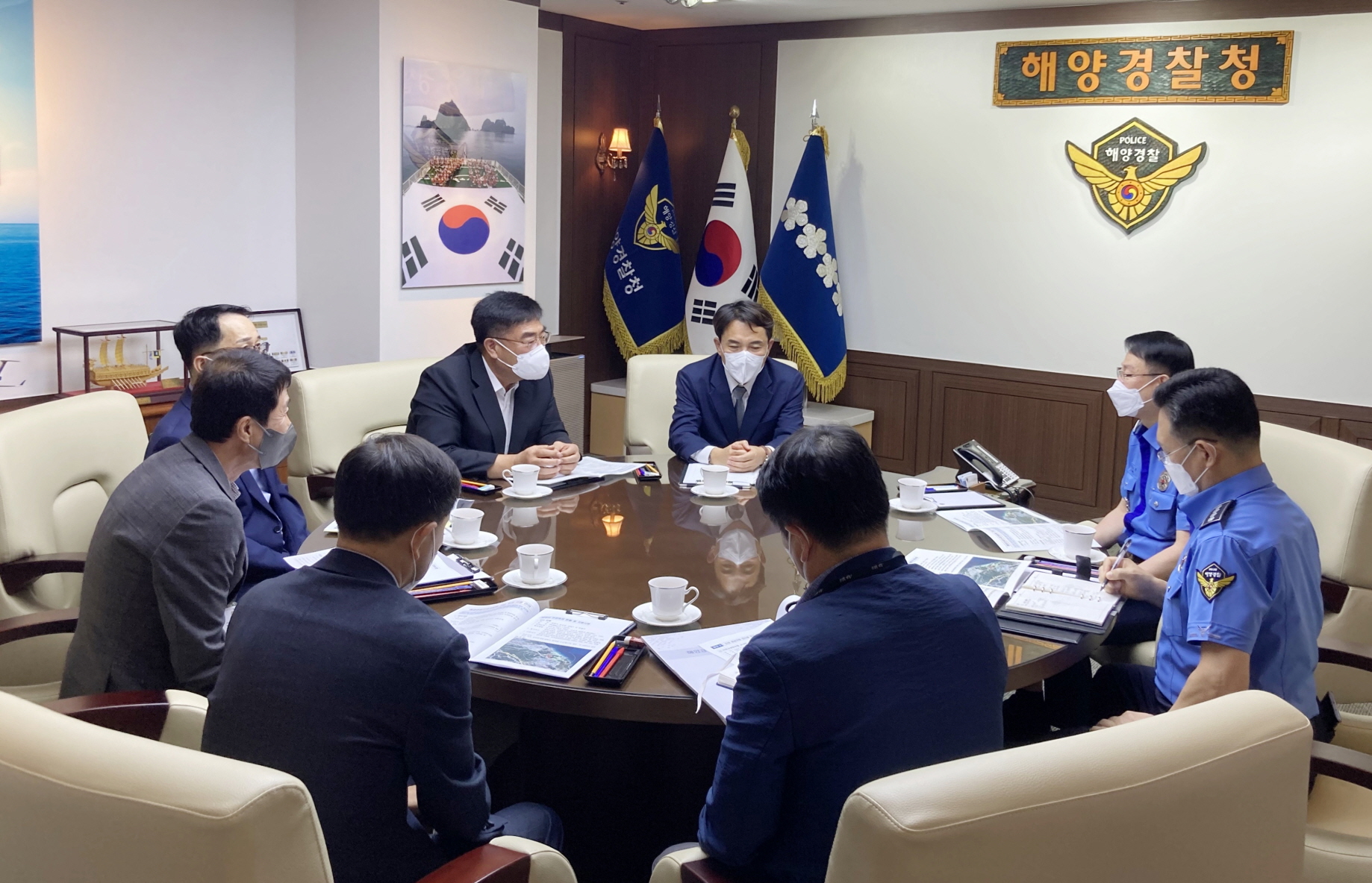 [강원사회복지신문 김도연 기자]=박상수 삼척시장이 지난 9월 20일(화) 김진태 강원도지사와 함께 해양경찰 인재개발원 유치를 위해 해양경찰청을 방문했다. 박 시장은 정봉훈 해양경찰청장과의 면담을 통해 해양경찰 인재개발원 건립 후보 부지인 삼척시의 특장점을 설명하고 선정을 위한 협조를 요청했다.