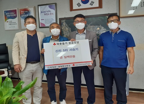 [강원사회복지신문 김종한 기자]=평창군 대화면 신리5리 주민 서승기씨는 지난 9월 20일 오전 11시 지역 내 어려운 이웃을 위해 사용해 달라며 성금 100만원을 대화면사무소에 기탁하였다. 서승기씨는 지난 대화면민체육대회(8. 27.)에서 경차 1대를 경품으로 받았으며, 이 기쁨을 지역 내 이웃들과 함께 나누고 싶다고 전했...
