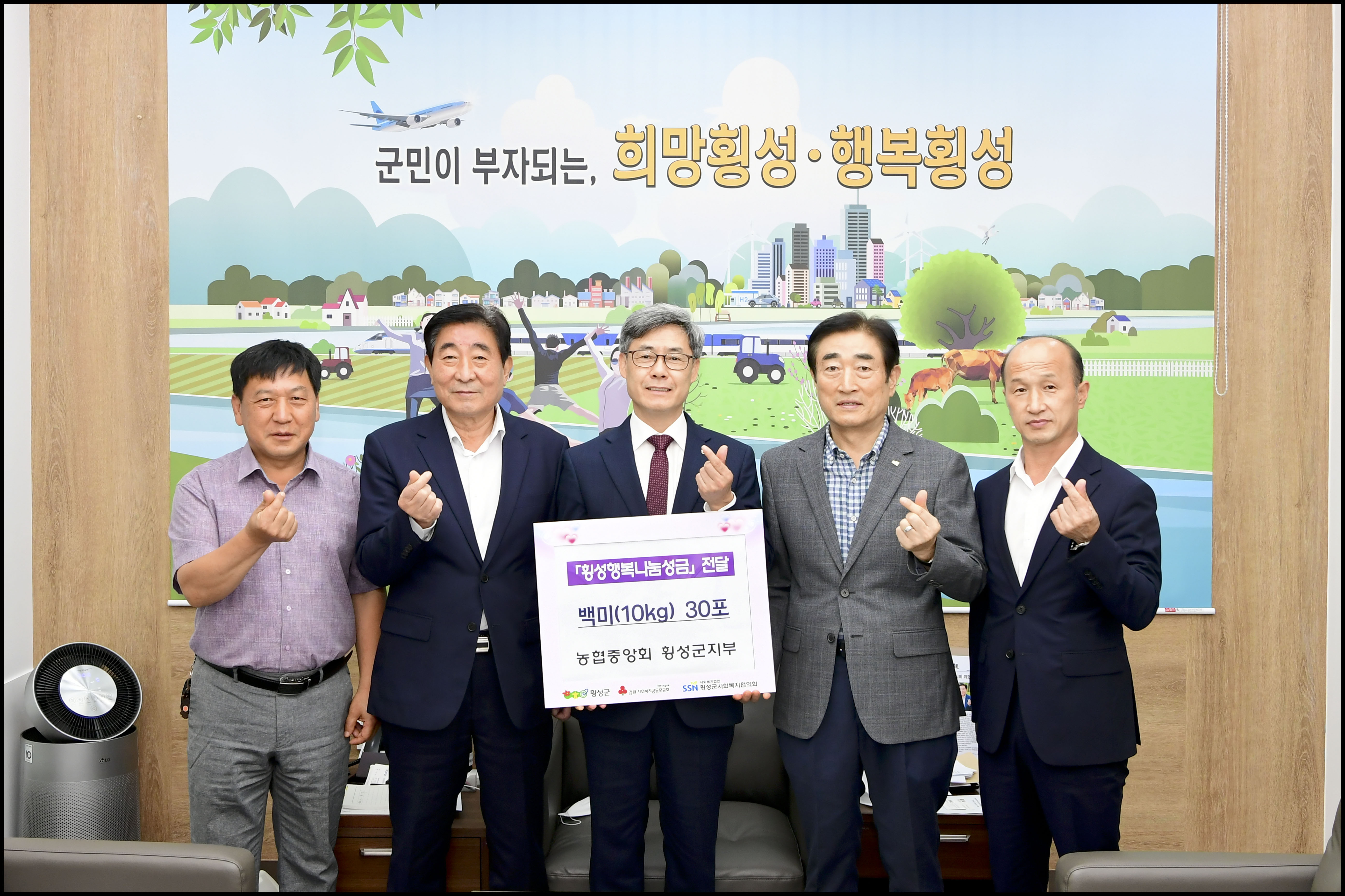 [강원사회복지신문 서은진 기자]=농협중앙회 횡성군지부(지부장 조경희)는 지난 9월 19일 오전 11시 횡성군청 군수집무실에서 백미(10kg) 30포를 횡성행복나눔성품으로 전달했다.