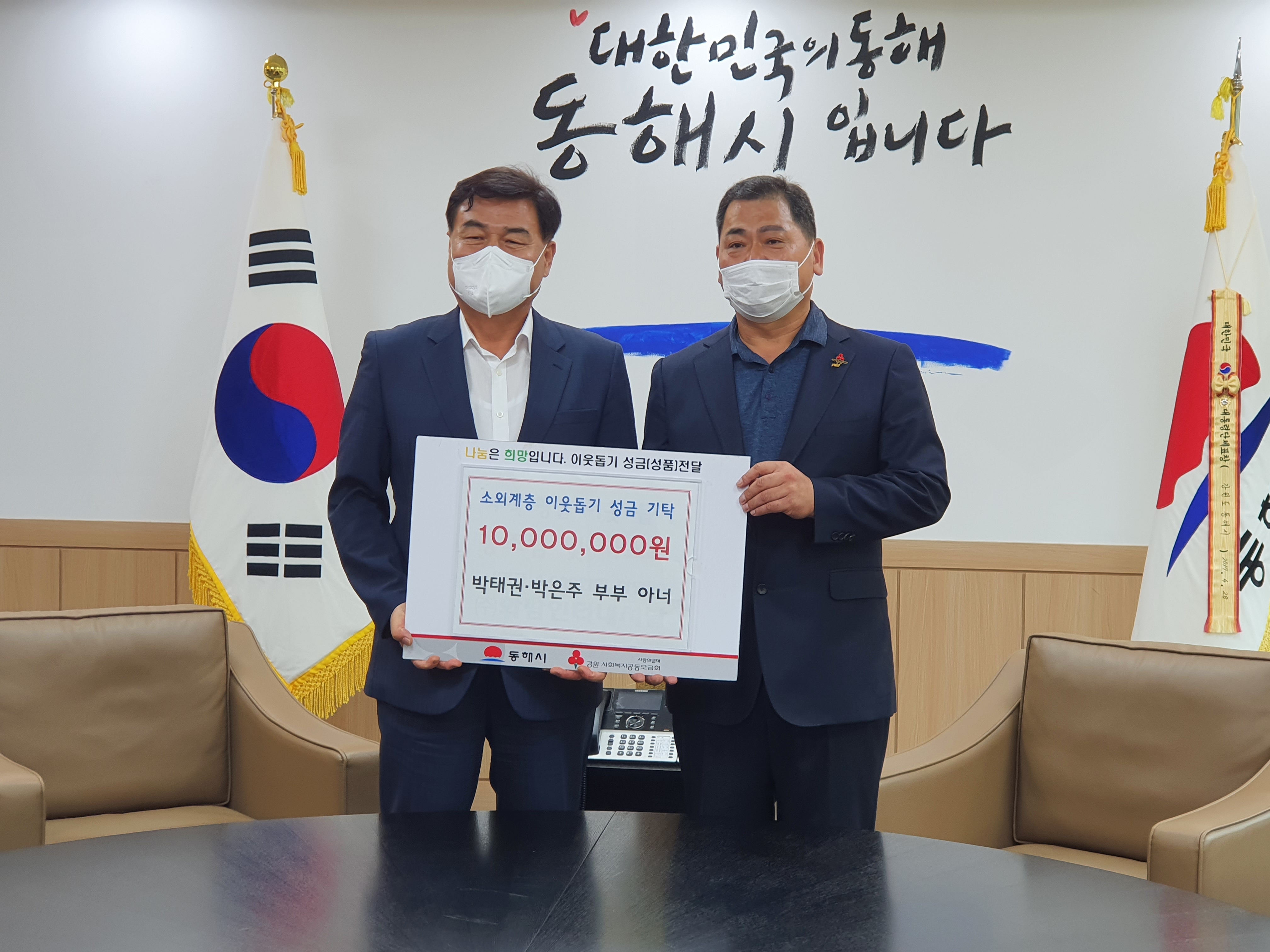 [강원사회복지신문 서은진 기자]=추암횟집대게(박태권&박은주 부부 아너)는 최근 추석 명절을 맞아 동해시 관내 어렵고 소외된 이웃들을 위해 사용해 달라며, 현금 1천만 원을 기탁했다. 박태권 대표는 "코로나19로 인해 사회적, 경제적 분위기가 침체된 가운데, 주위의 어려운 이웃들이 희망과 용기를 잃지 않고 따뜻한...
