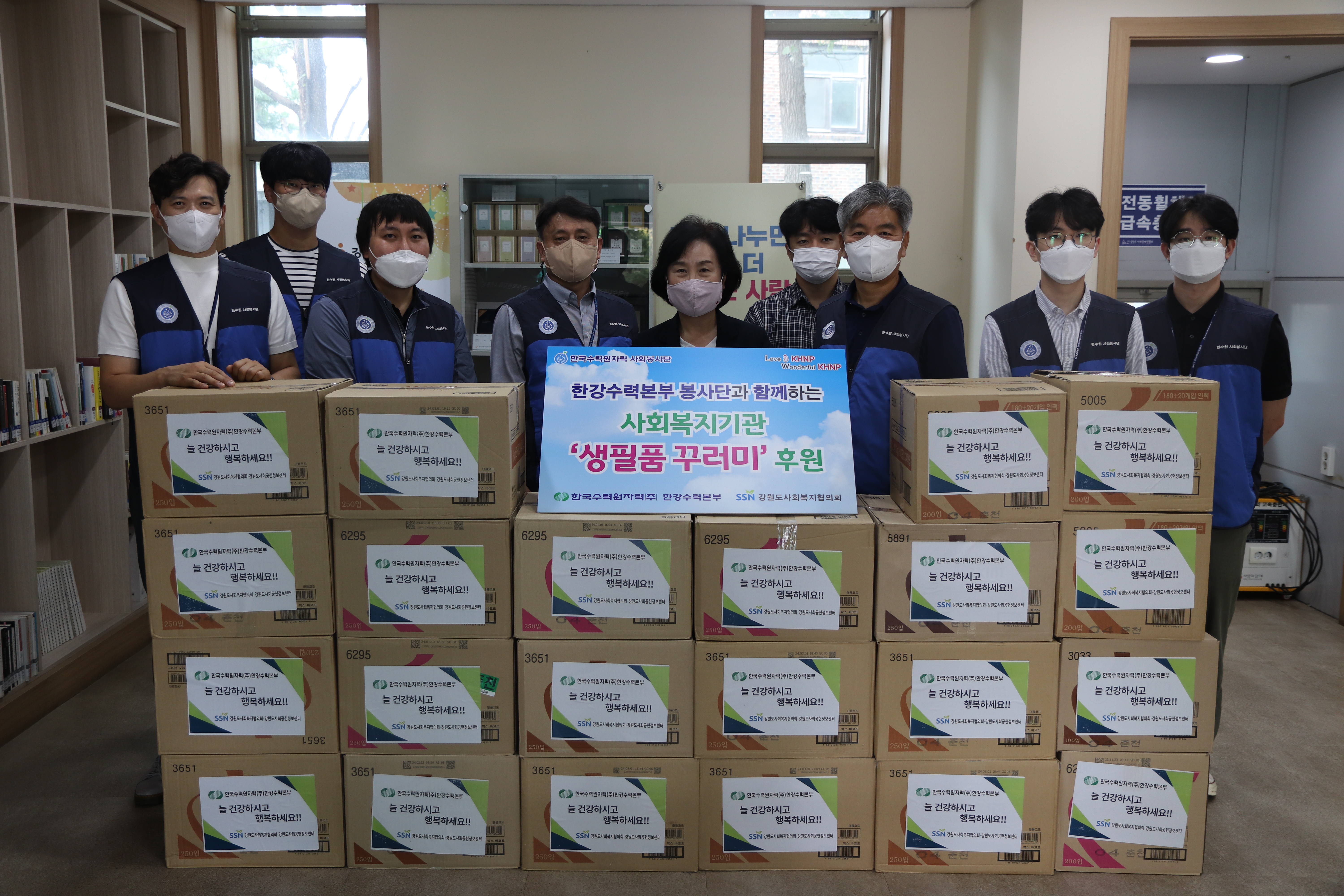 [강원사회복지신문 홍기한 기자]=한국수력원자력(주)한강수력본부(본부장 정헌철)는 지난 9월 15일 오후 1시 강원도사회복지회관에서 생필품 꾸러미(식료품 17종 / 3,000천원 상당)를 강원도사회공헌정보센터(센터장 홍기종)를 통해 기탁하여 전달식을 가졌다. 이날 한국수력원자력(주)한강수력본부에서 기탁한 생필품 꾸러미...