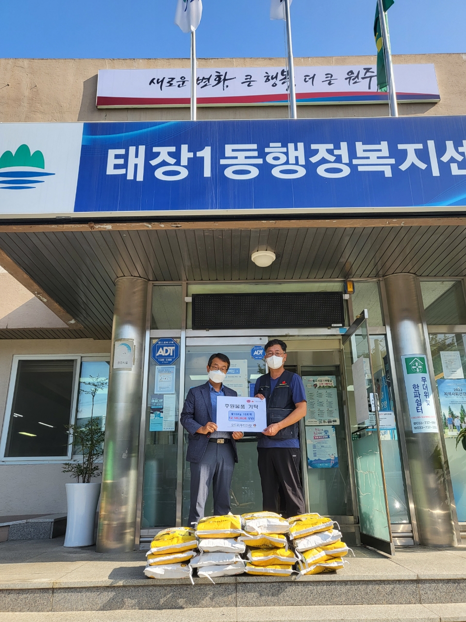 [강원사회복지신문 홍기한 기자]=오드리푸드마켓을 운영하고 있는 (주)오드리 리테일(대표 허성영, 허성일)은 지난 9월 7일 행정복지센터를 방문해 원주시 태장1동에 거주하는 저소득층 세대에 전달해 달라며 쌀 10㎏ 15포를 기탁했다. (주)오드리리테일 장인수 점장은 "코로나19로 경제적으로 힘든 시기를 보내고 있는 취약...