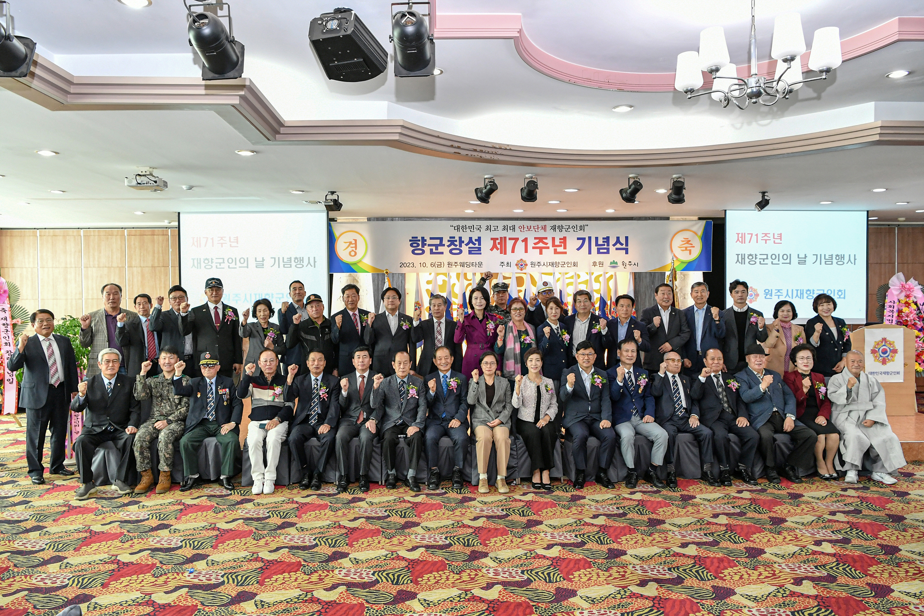 [강원사회복지신문 김도연 기자]=10월 6일 오전 11시, 원주웨딩타운 4층에서 열려 제71주년 재향군인의 날 기념행사가 지난 10월 6일 오전 11시 원주웨딩타운 4층에서 개최됐다. 이번 기념행사에는 김태훈 원주시 부시장, 장경생 원주시 재향군인회장 등 500여 명이 참석하였다. 안보의식을 고취하고 재향군인회의 결속과 단...