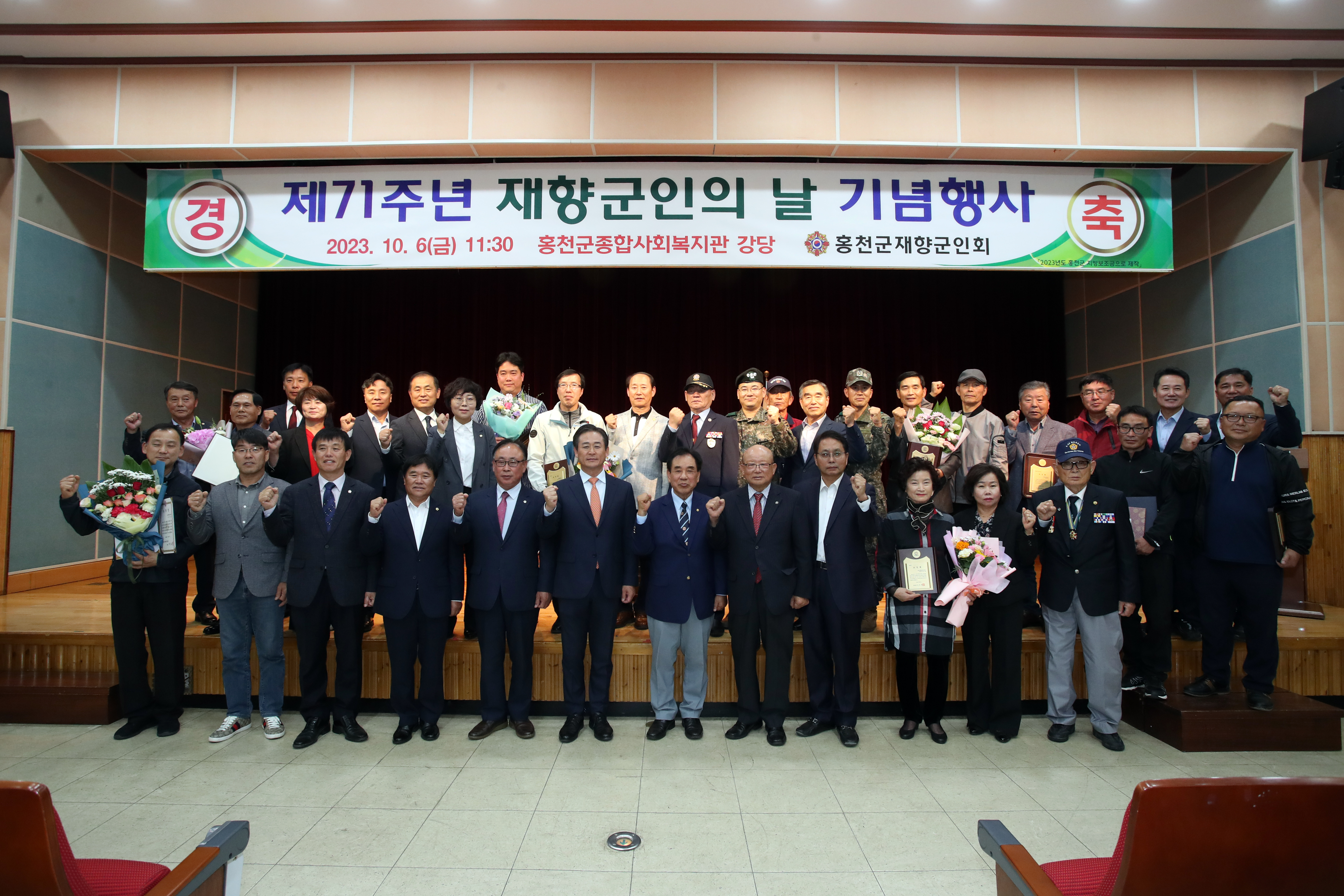 [강원사회복지신문 서은진 기자]=홍천군 재향군인회(회장 이효식)는 지난 10월 6일 홍천군 종합사회복지관 강당에서 제71주년 재향군인의 날 기념식 행사를 개최했다. 이날 행사에는 향군회원 50여 명이 참석한 가운데 1부 안보 강연을 시작으로 2부 기념식(국민의례, 유공자 표창, 기념사, 결의문 낭독 등) 순으로 진행됐다...