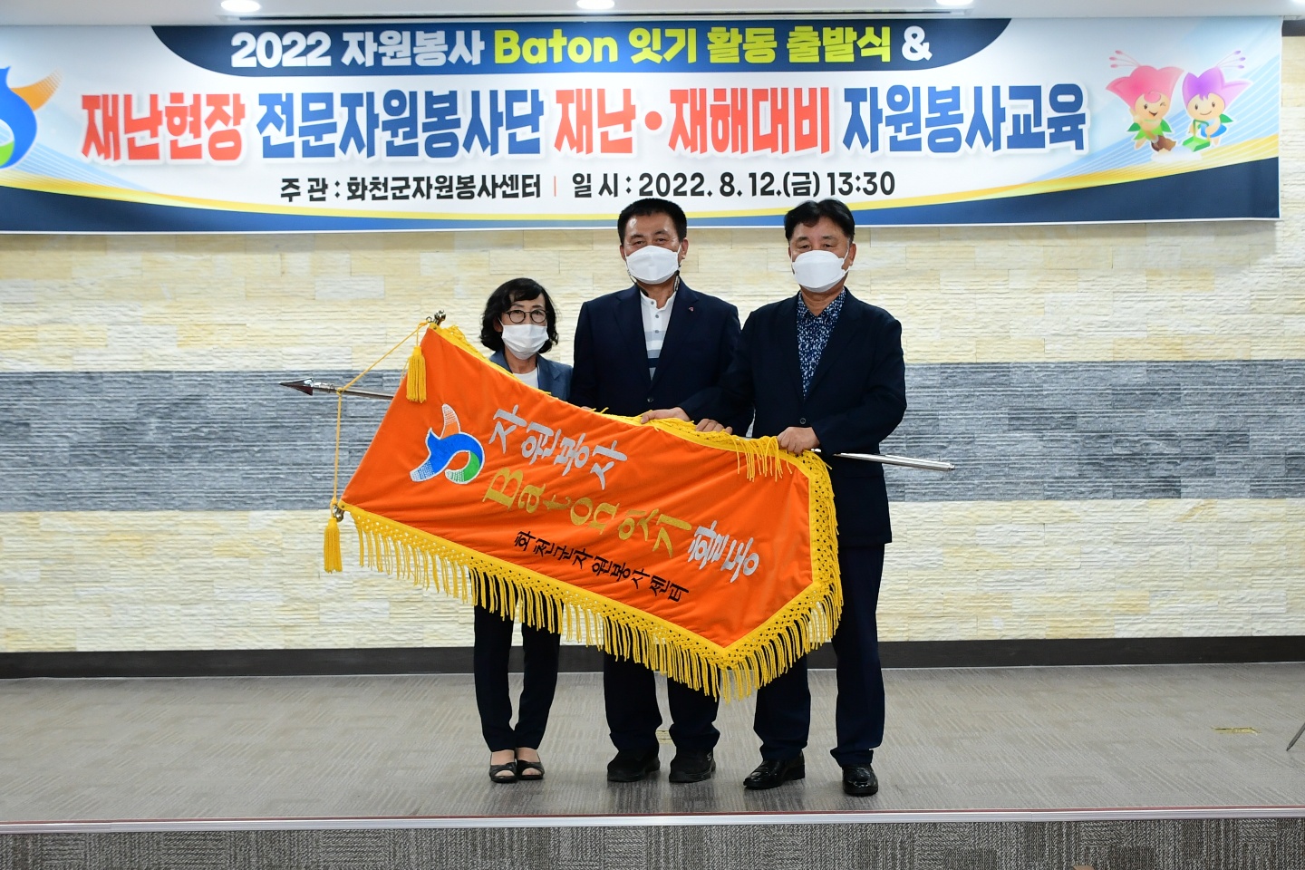 [강원사회복지신문 서은진 기자]=2022 자원봉사 바톤잇기 활동 출발식이 지난 8월 12일 화천종합사회복지관에서 최문순 화천군수, 김영수 화천자원봉사센터소장, 김영자 화천군여성단체협의회회장, 노이업 군의장, 박대현 도의원을 비롯해 군의원들이 참석한 가운데 열렸다.