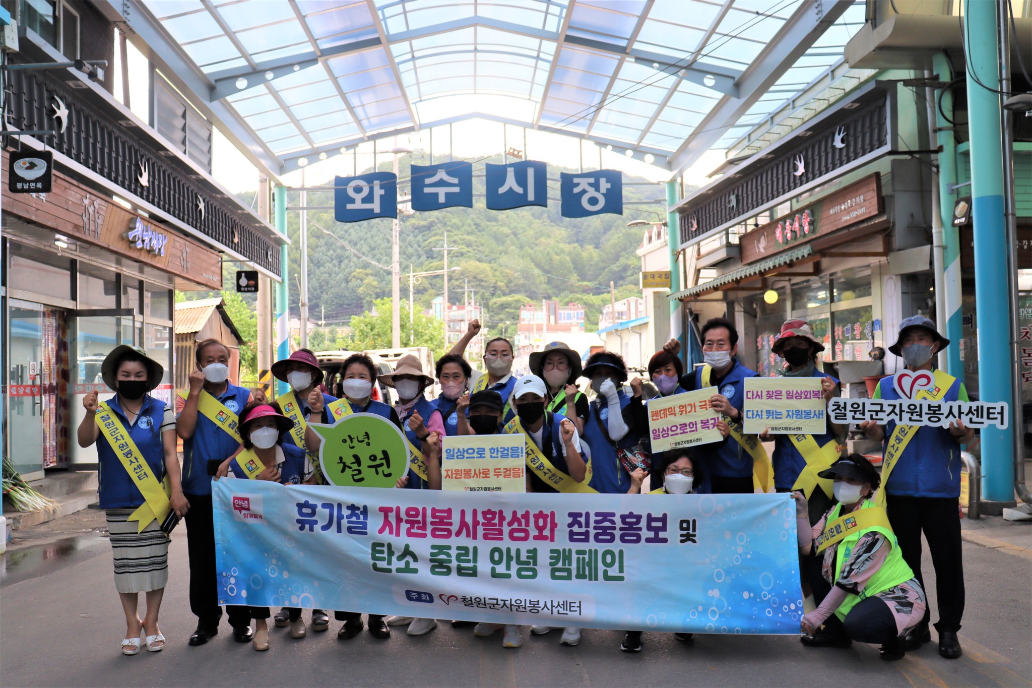 [강원사회복지신문 김종한 기자]=한국자유총연맹 철원군지회는 지난 8월 16일 오전 10시 휴가철맞이 자원봉사집중홍보활동이 와수리 전통시장에서 실시되었다.