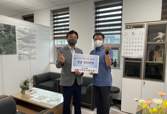 [강원사회복지신문 홍기한 기자]=춘천시 석사동지역사회보장협의체(위원장:최형화)는 지난 8월 8일 석사동 행정복지센터를 방문해 석사동기부장터수익금 300만원을 기탁했다.