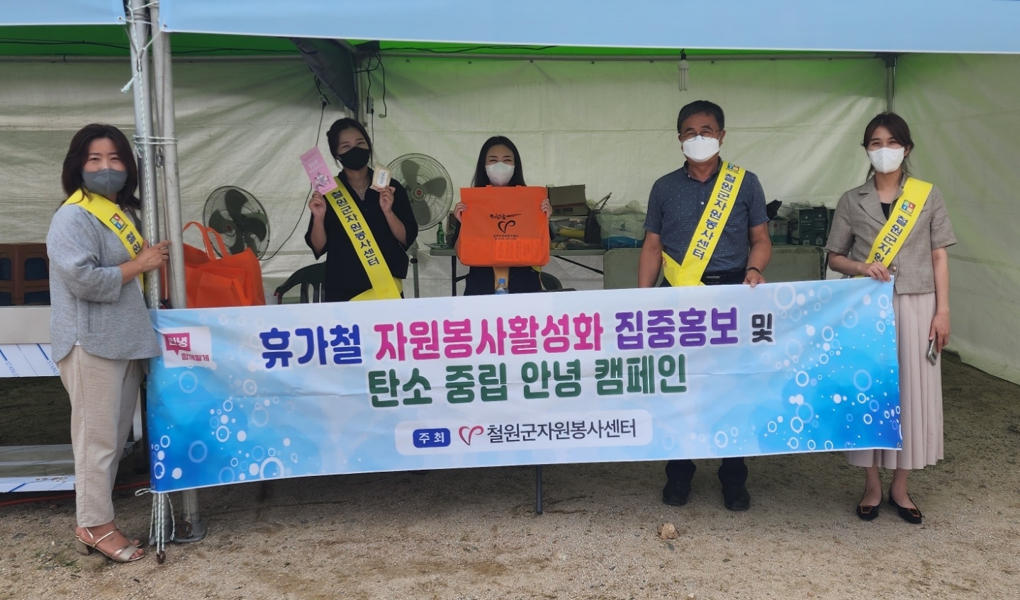 [강원사회복지신문 이정환 기자]=탄소는 줄이고! 환경은 살리고! 철원군자원봉사센터(센터장 진익태) 센터직원들은 지난 8월 4일 뜨거운 열기가 가득한 다슬기 축제장에서 탄소중립 캠페인 홍보 활동을 진행했다. 캠페인 안내를 통해 철원군민들의 환경과 탄소중립에 대한 관심과 참여를 독려했다.