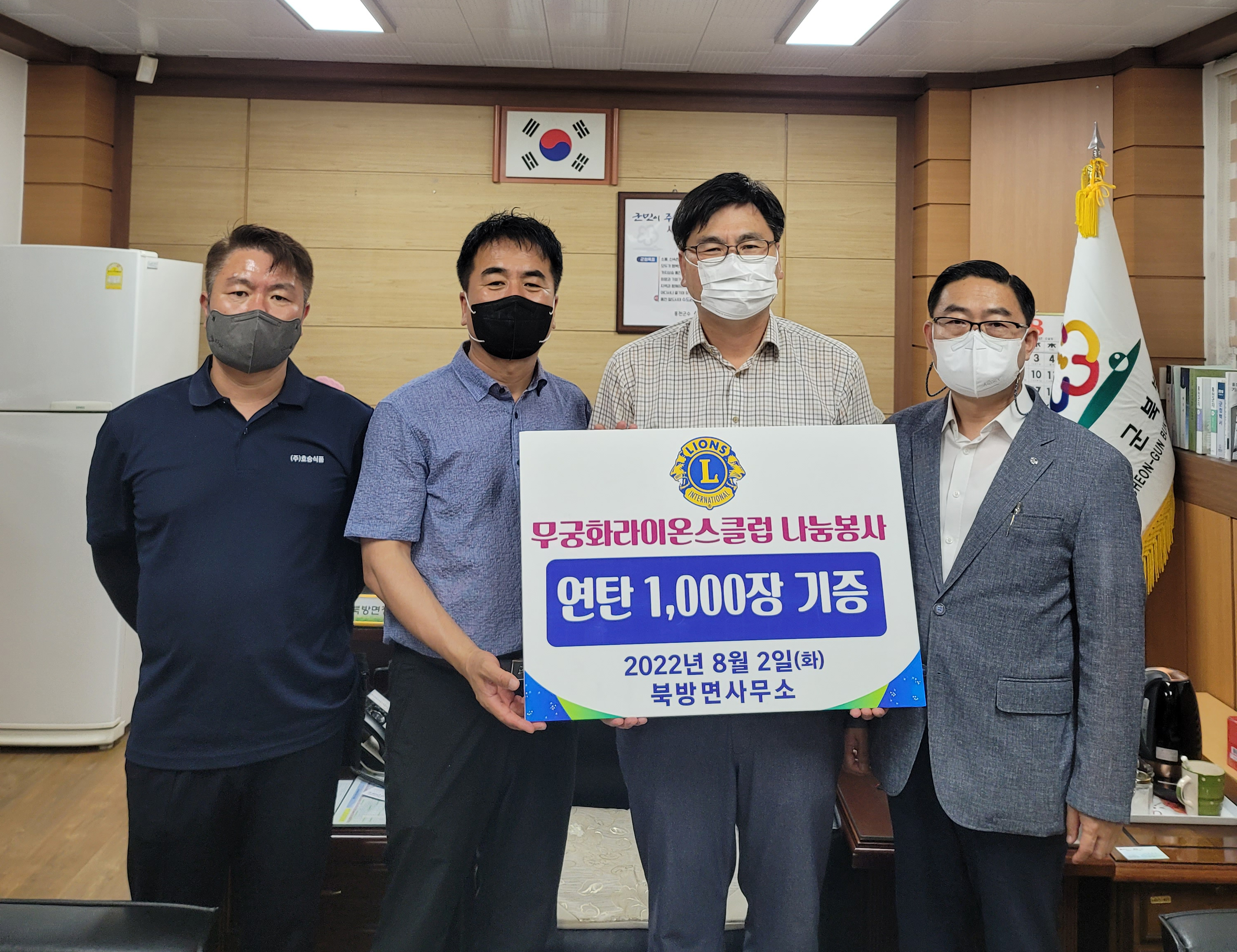[강원사회복지신문 홍기한 기자]=무궁화라이온스클럽(회장 박희원)은 지난 8월 2일 홍천군 북방면행정복지센터를 방문, 연탄 1,000장(85만원 상당)을 기탁했다. 박희원 회장은 "계속되는 경기침체로 인해 지역 주민들의 가계경제가 어려운 상황”이라며 “우리의 작은 나눔이 저소득층의 일상생활에 조금이나마 도움이 됐으면...