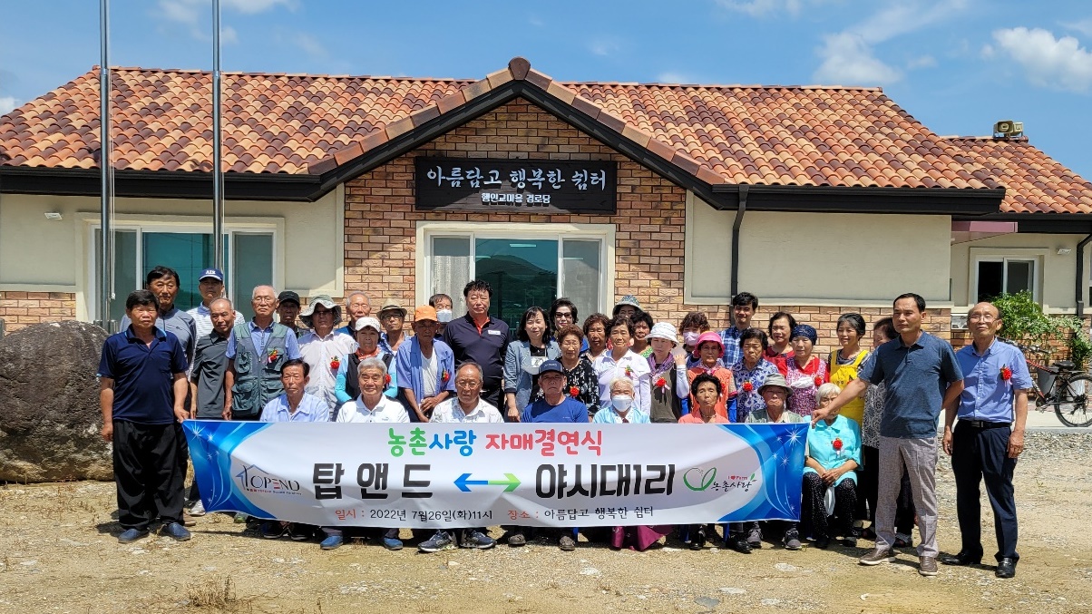 [강원사회복지신문 홍기한 기자]=홍천군 화촌면 야시대1리(이장 한종희)는 지난 7월 26일 아름답고 행복한 쉼터(행인교 경로당)에서 인천 소재 주방가구 업체인 탑앤드(대표 안영배)와 1사 1촌 자매결연을 맺었다. 화촌면 출신인 안영배 대표는 마을 발전기금으로 500만원을 전달했으며, 야시대1리는 100만원 상당의 지역 농...