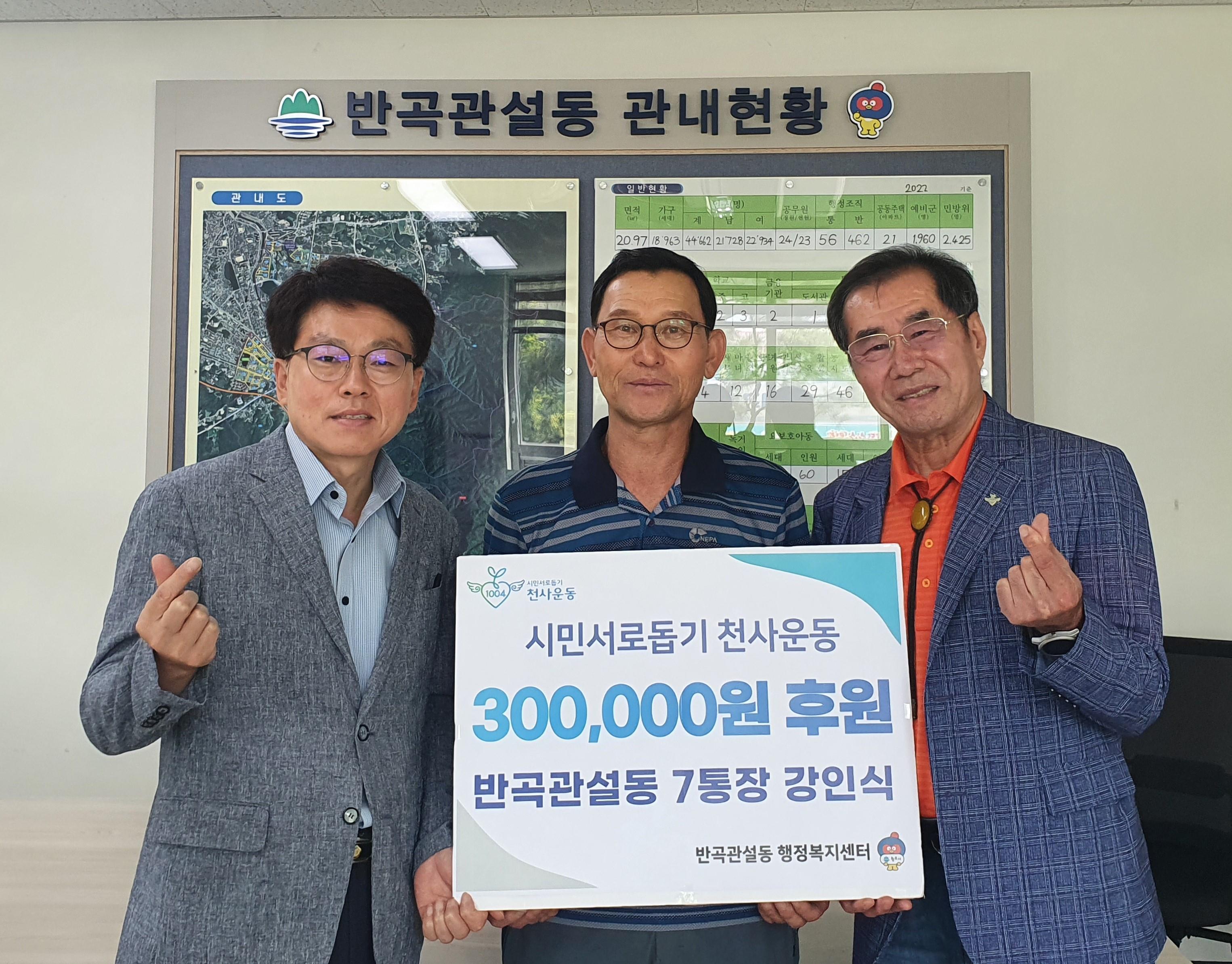 [강원사회복지신문 이정환 기자]=원주시 반곡관설동 강인식 통장(섭재마을, 7통)은 지난 7월 25일 반곡관설동 행정복지센터를 방문해 천사후원금 30만 원을 전달했다. 강인식 통장은 연 2회 지급되는 통장 상여금과 함께 재활용 자원을 팔아 생긴 수익금을 모아 어려운 이웃을 위해 꾸준히 후원 활동을 하는 모범 통장이다. ...